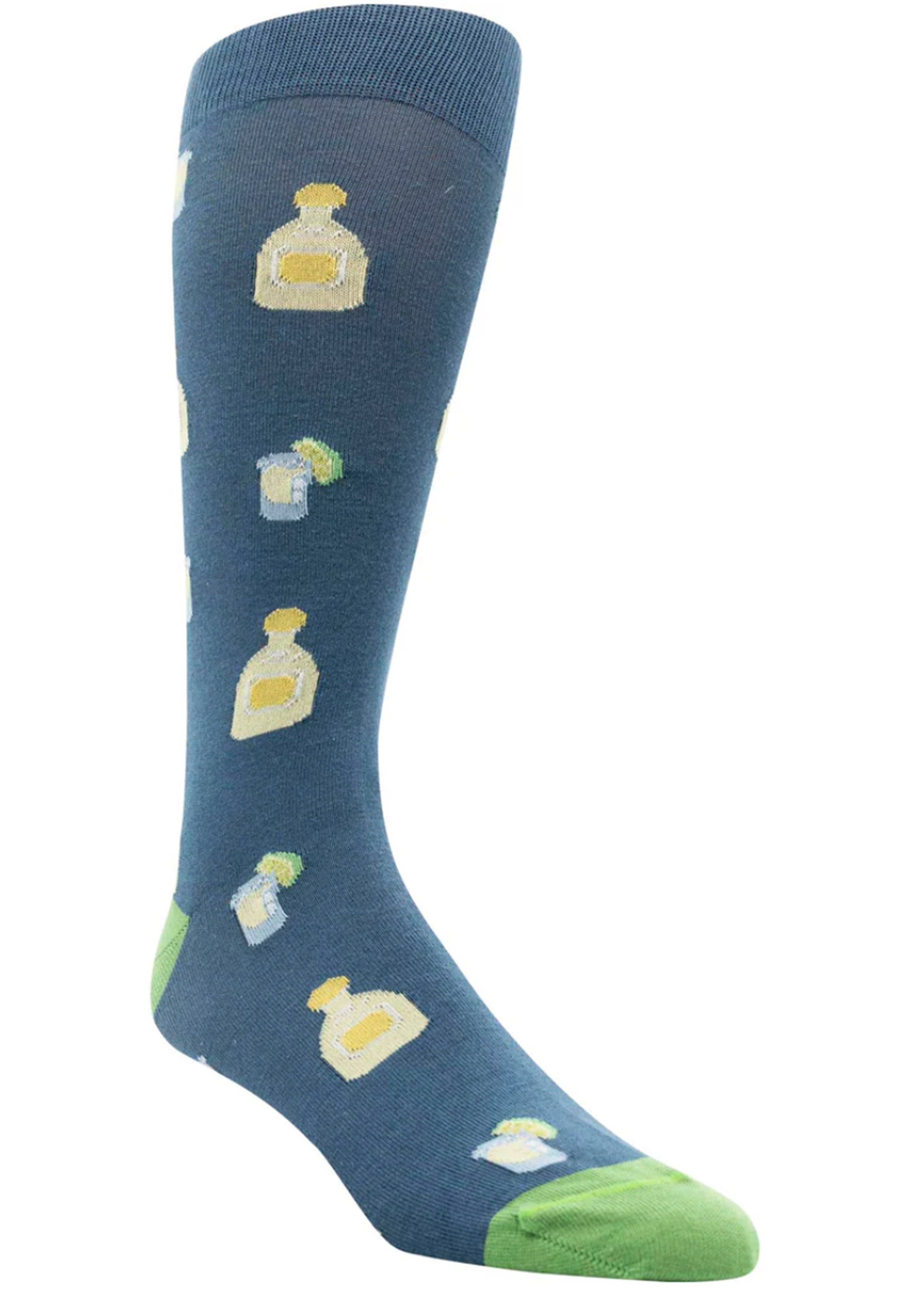 Salt, lime, and serious style it's always Tequila Time with this bold, spirited sock. Featuring playful tequila bottle and shot glass motifs, this design brings a festive twist to your outfit, whether you're headed to a party or just pouring one for yourself. Crafted with soft, breathable Peruvian Pima Cotton for comfort that goes down smooth.