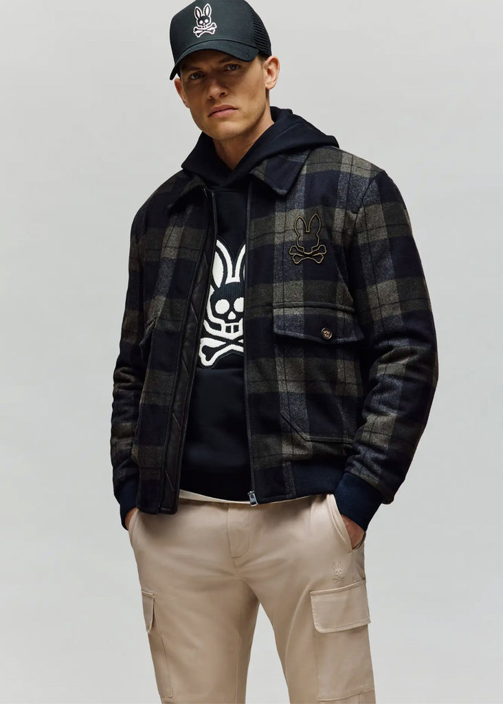 Psycho Bunny Gavin Plaid Bomber Jacket | Dusky Green