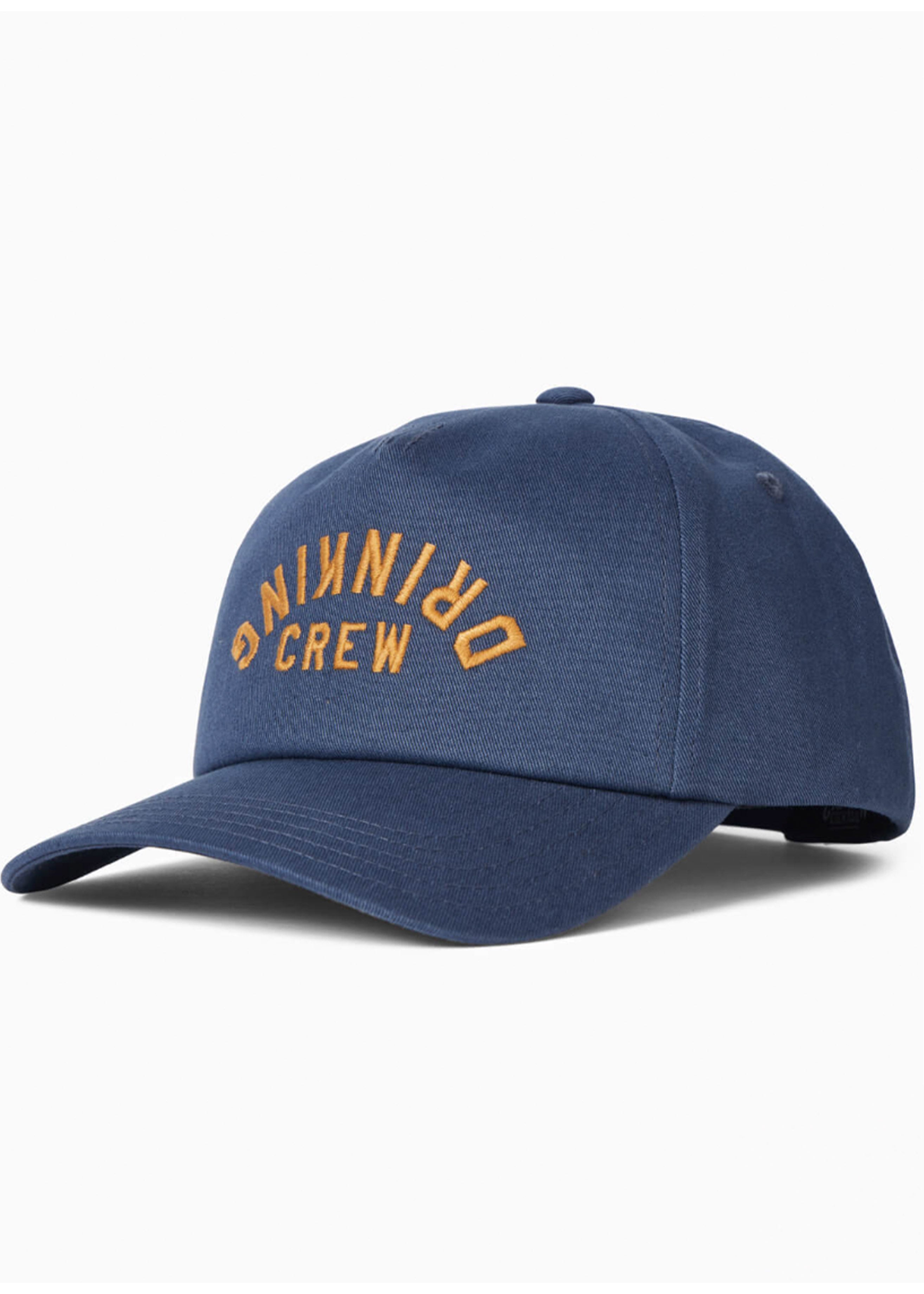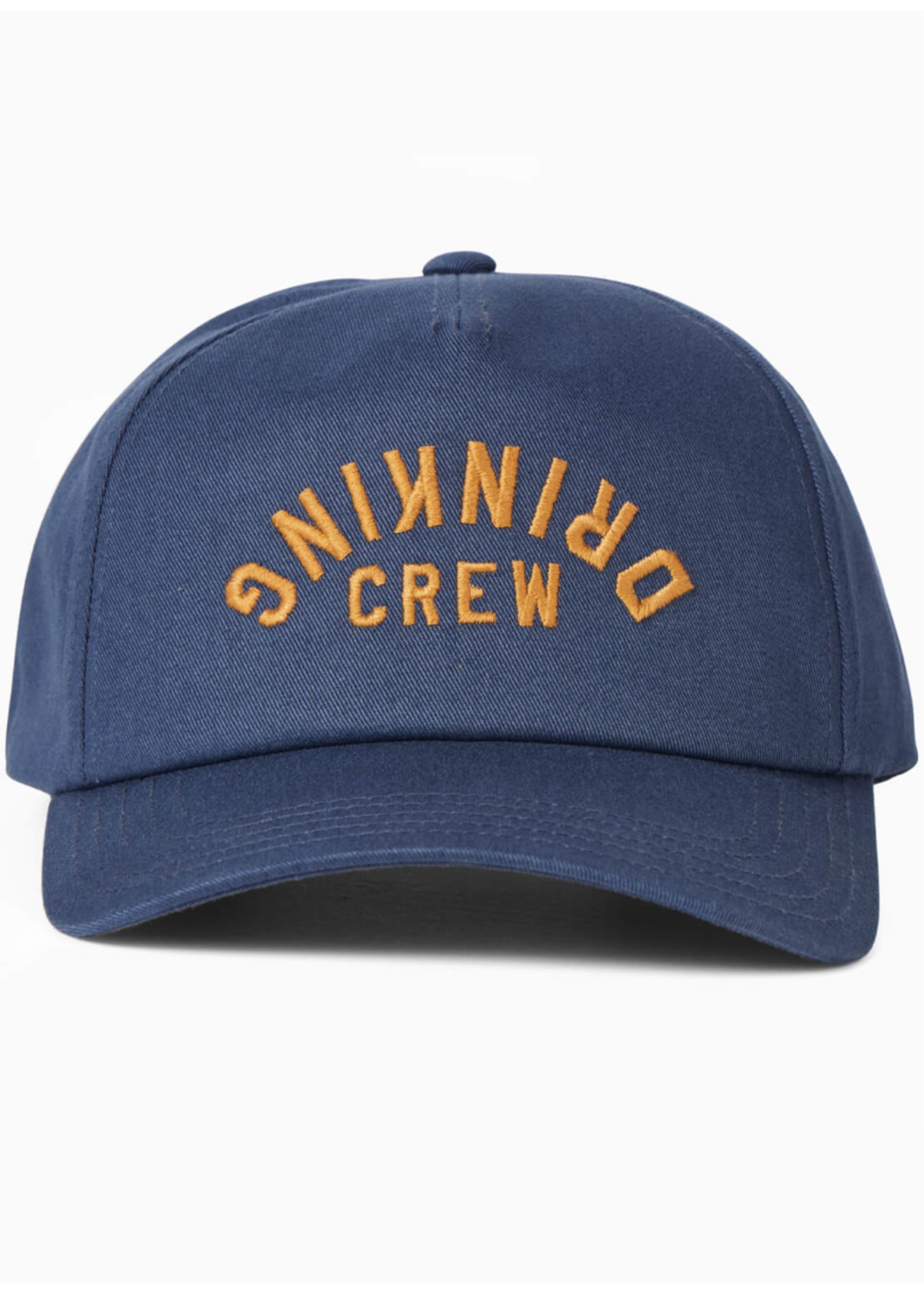 This snapback hat features custom embroidery that reads "Drinking Crew," blending a trendy look with vintage flair. With a structured crown and adjustable snapback, it’s both stylish and comfortable for any laid-back occasion.