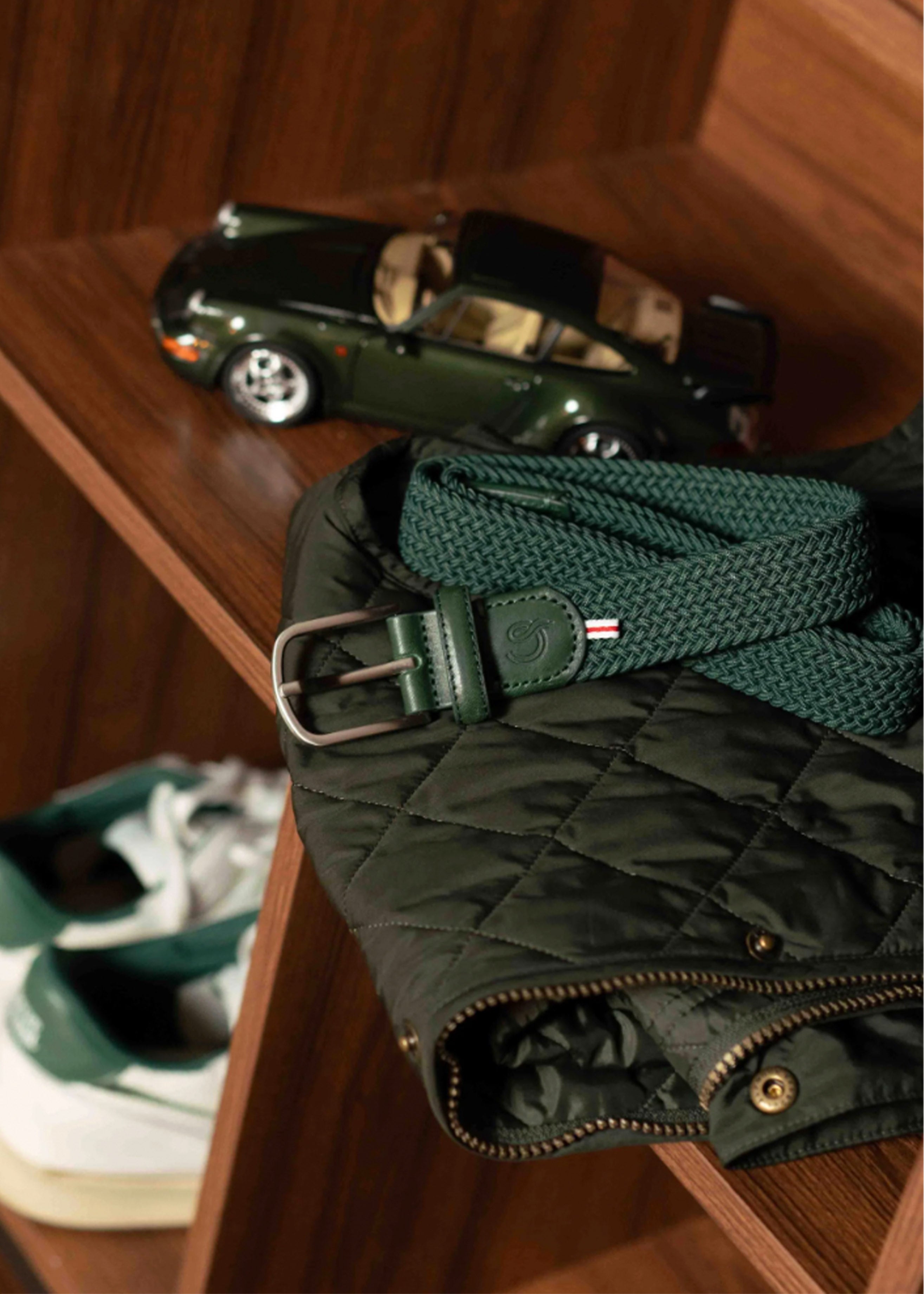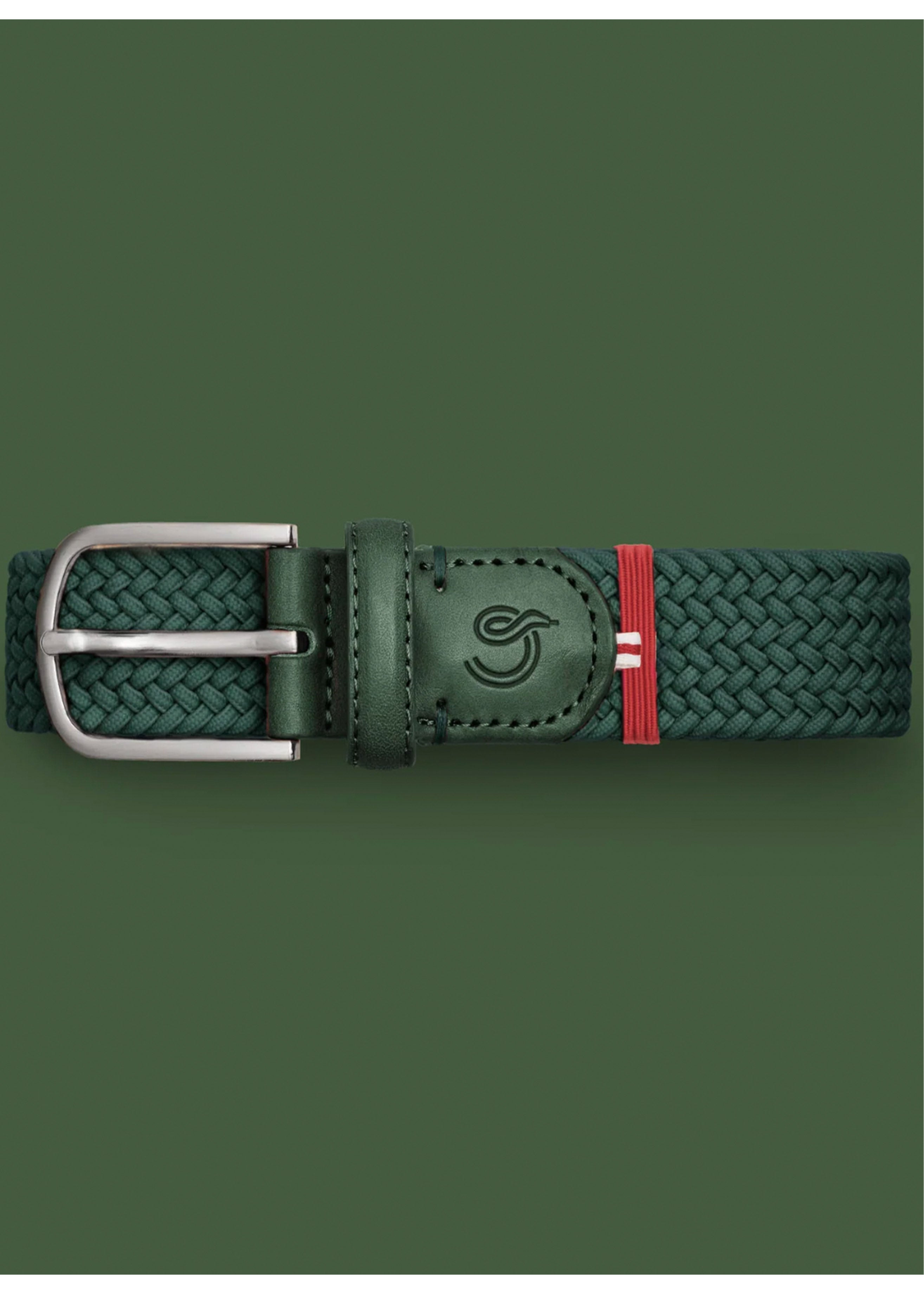 The Bocconi La Boucle belt, braided in the colour Hunter Green.