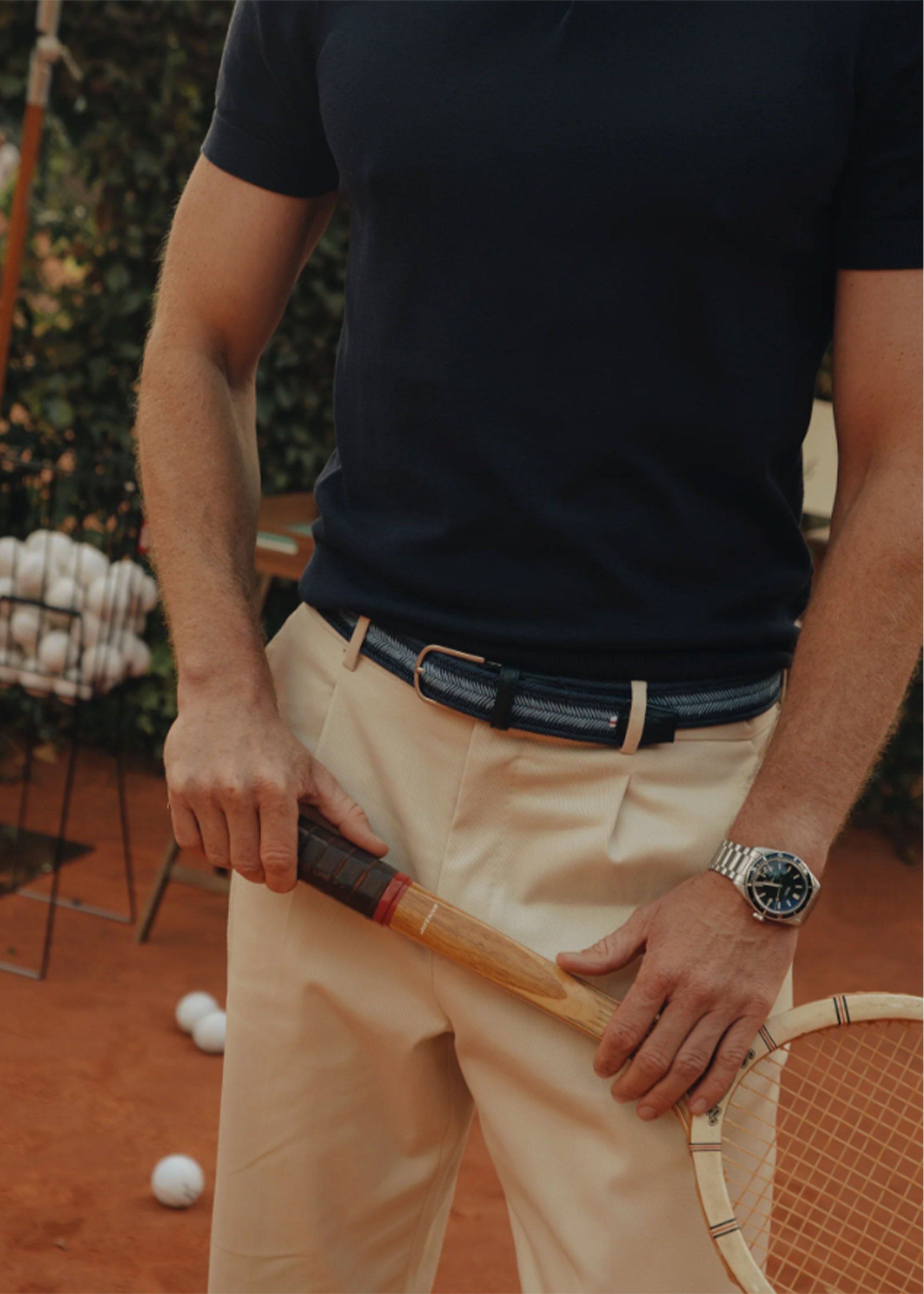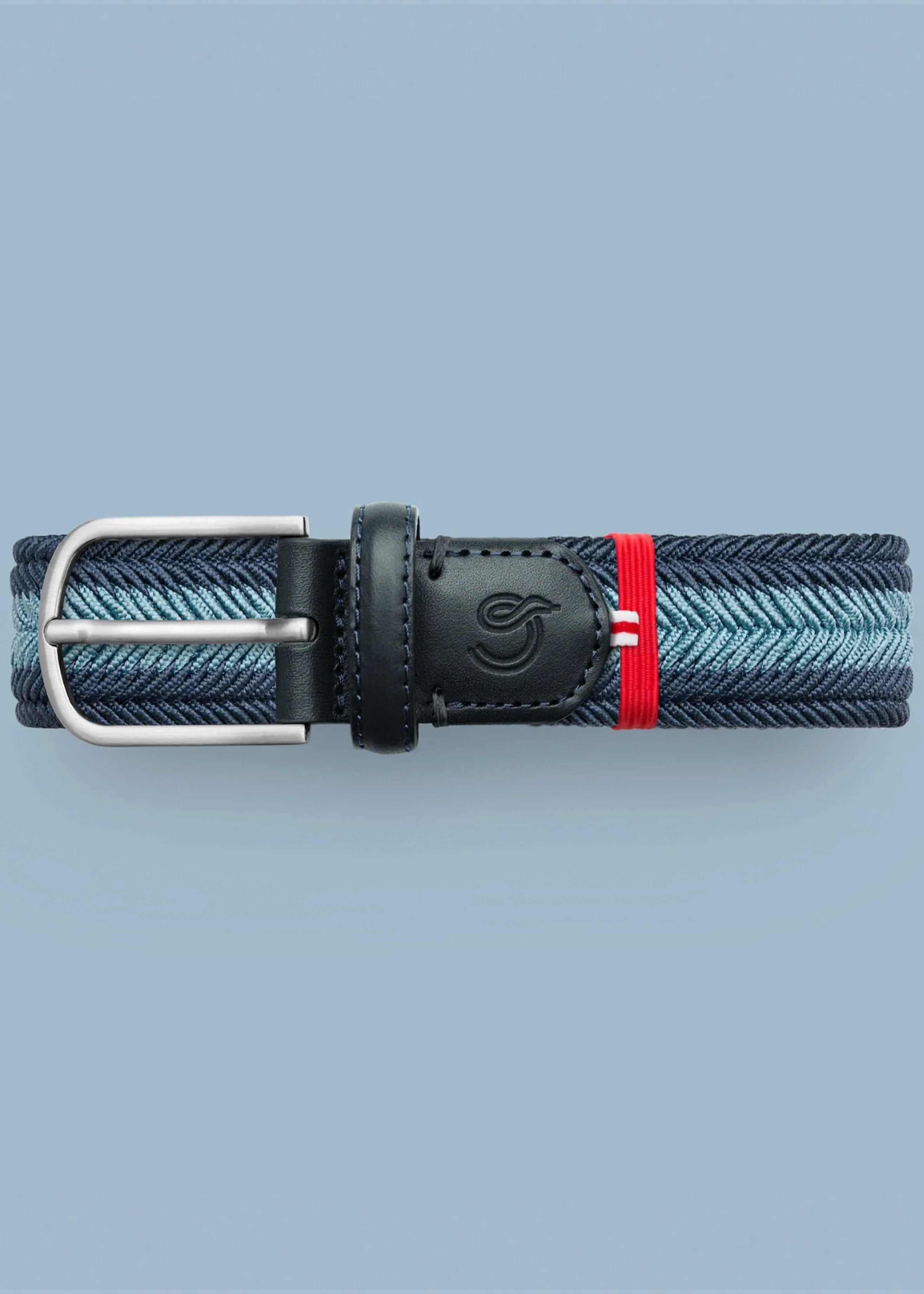 The Sheffield, braided in dark blue and light blue. A Chevron club model with leather details.