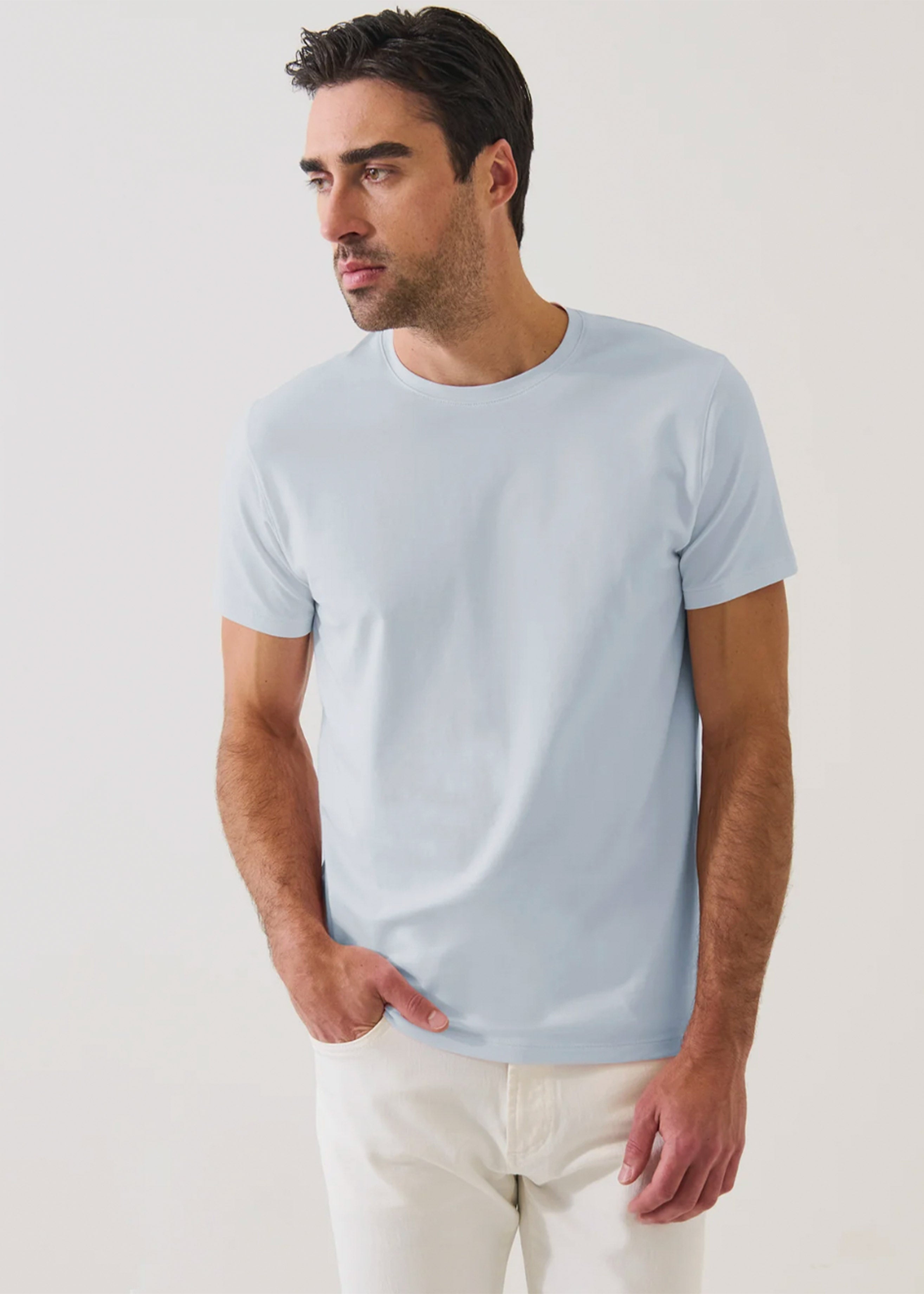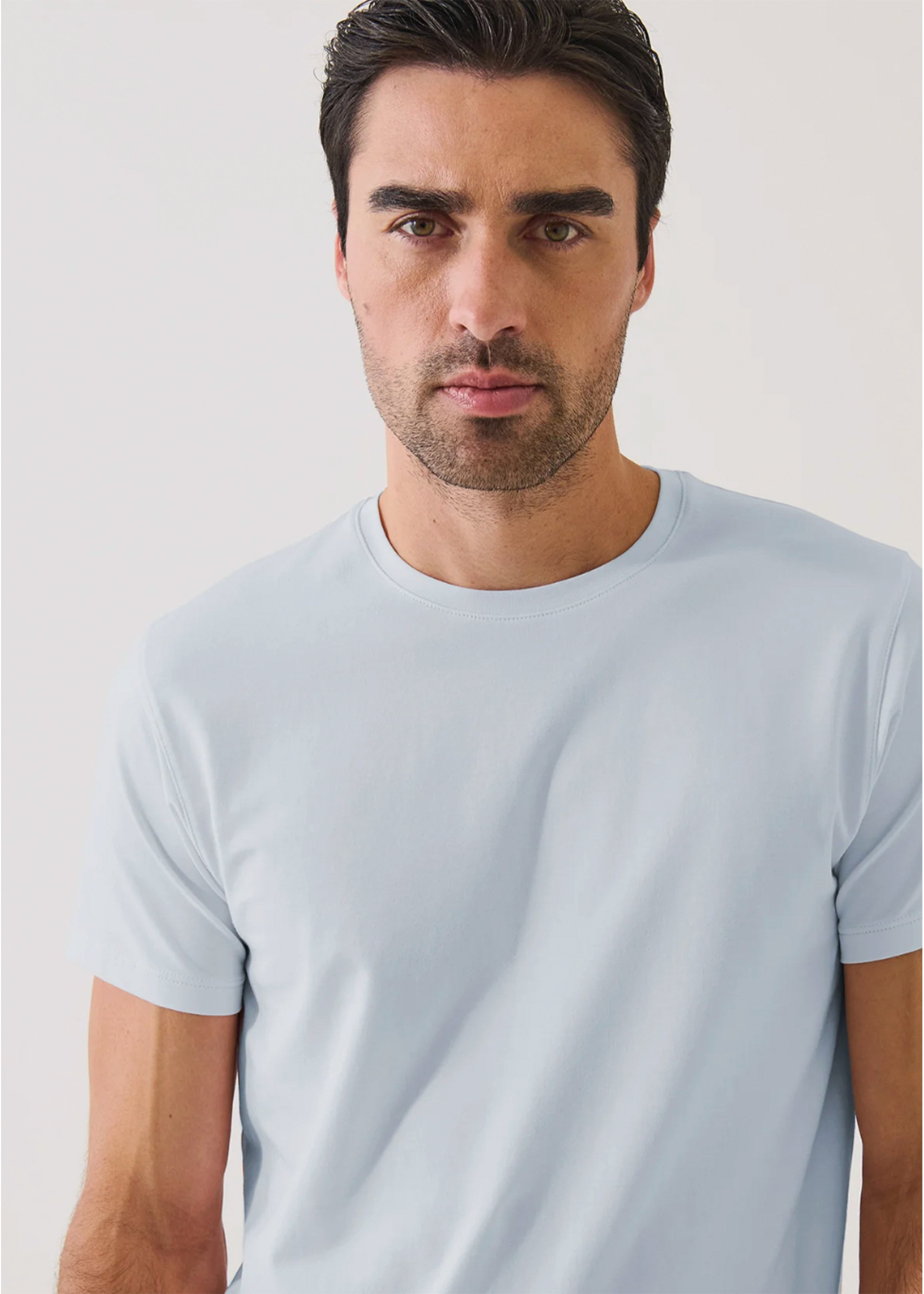 Patrick Assaraf Short Sleeve Iconic Pima Cotton Stretch Crew T-Shirt | Blue Ice