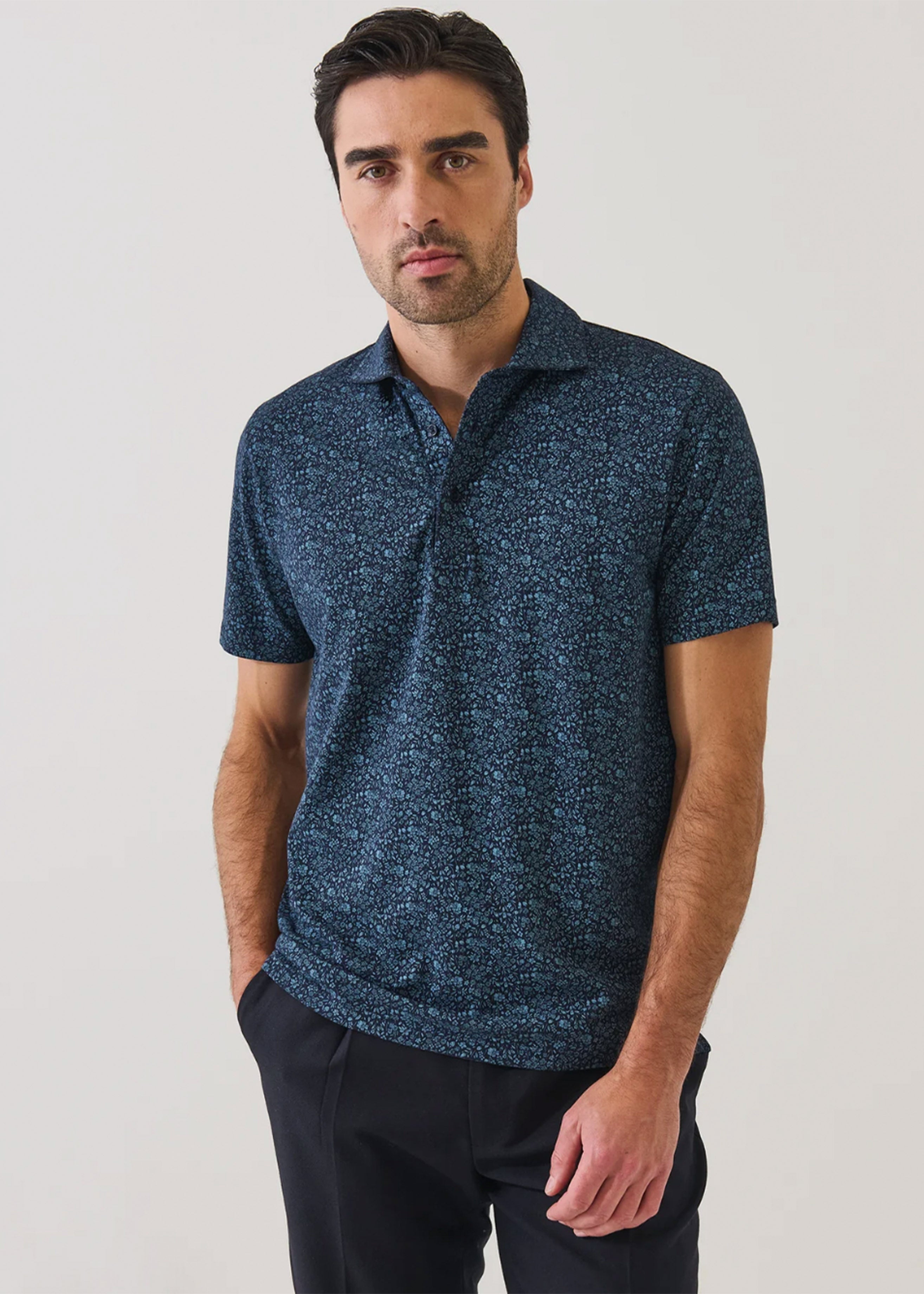 Crafted from an ultra-soft cotton blend with a touch of stretch, this polo delivers a refined approach to everyday comfort. A subtle geometric print lends understated character, while the modern fit and breathable fabric make it an effortless choice for warm-weather style.