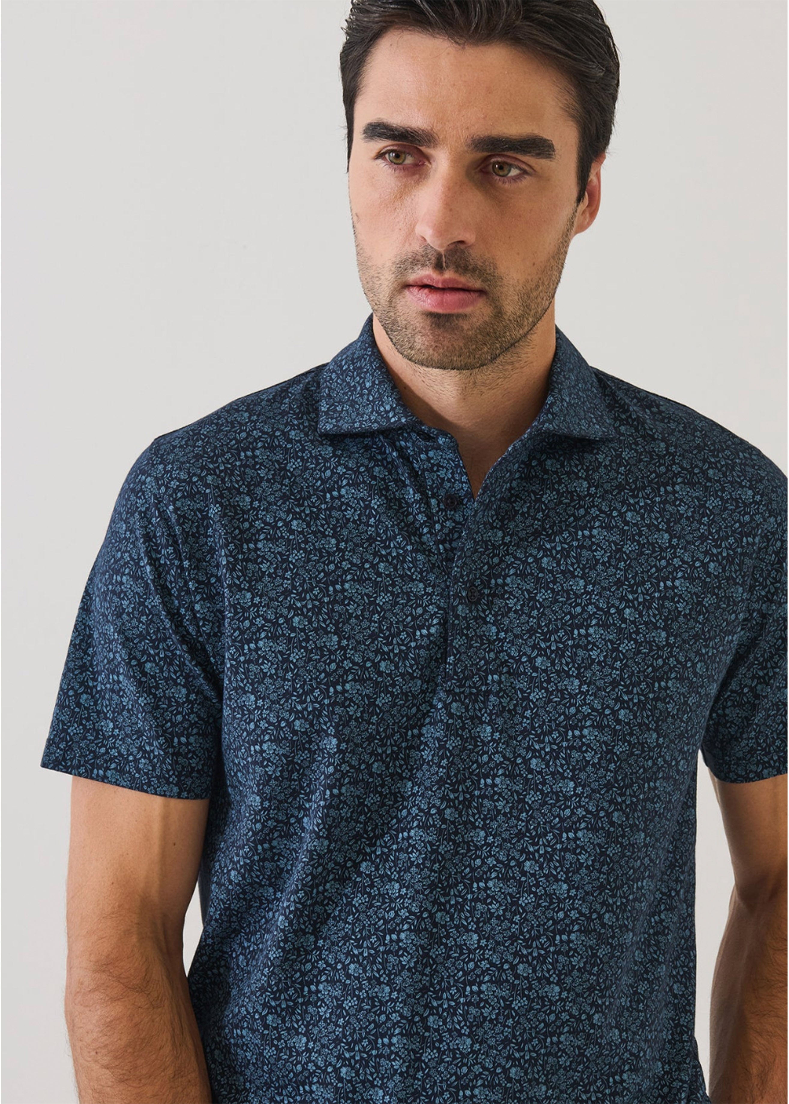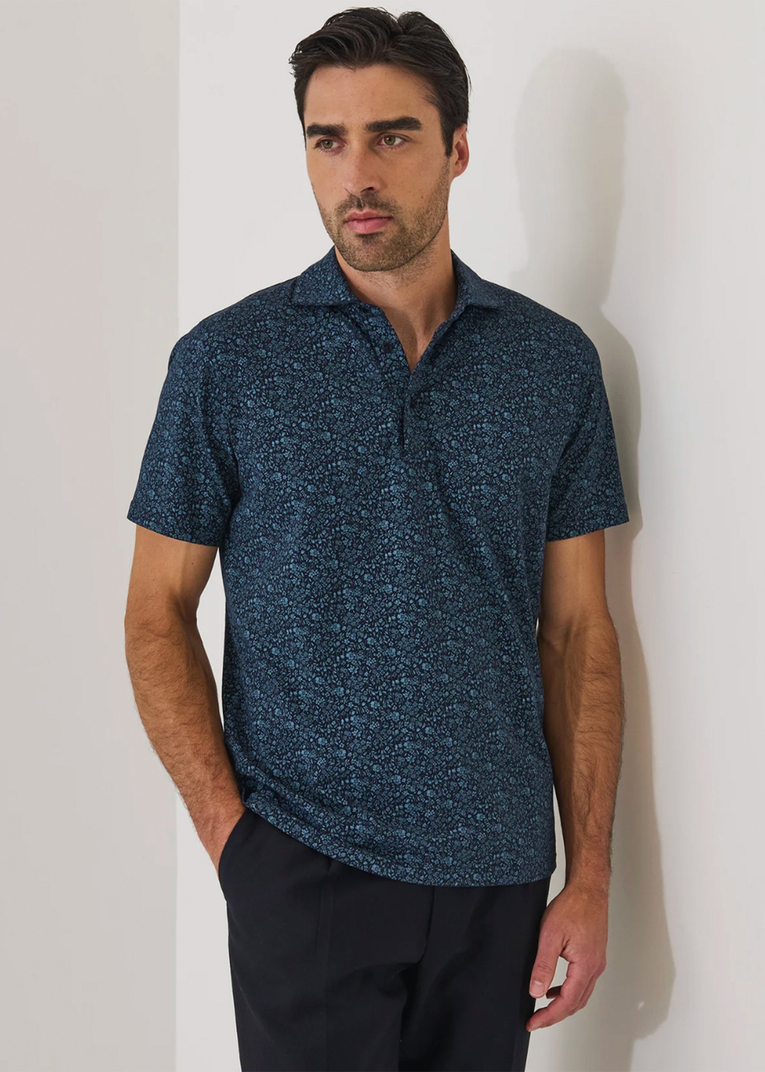 Patrick Assaraf Short Sleeve Mini Floral Print Polo | Haze