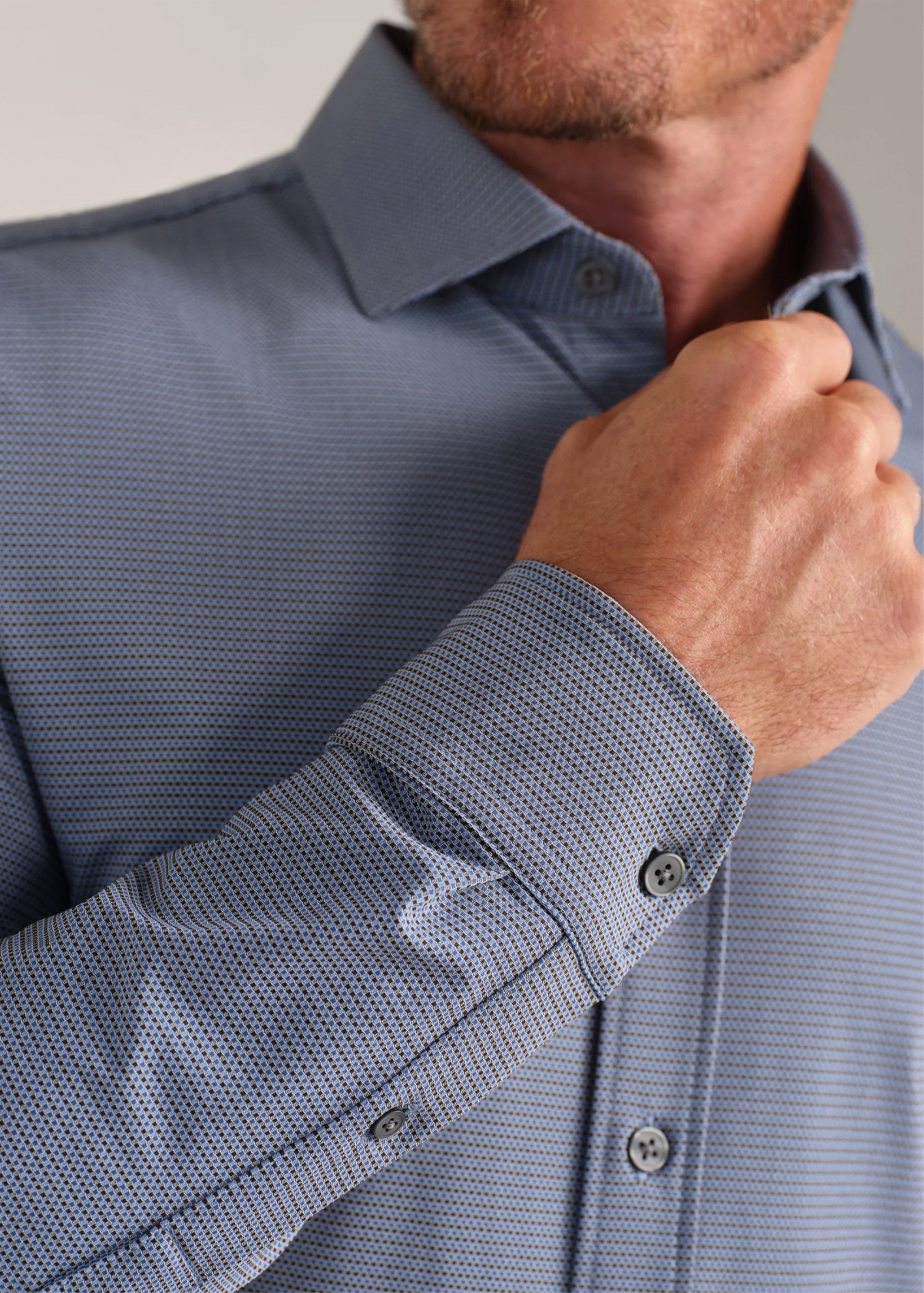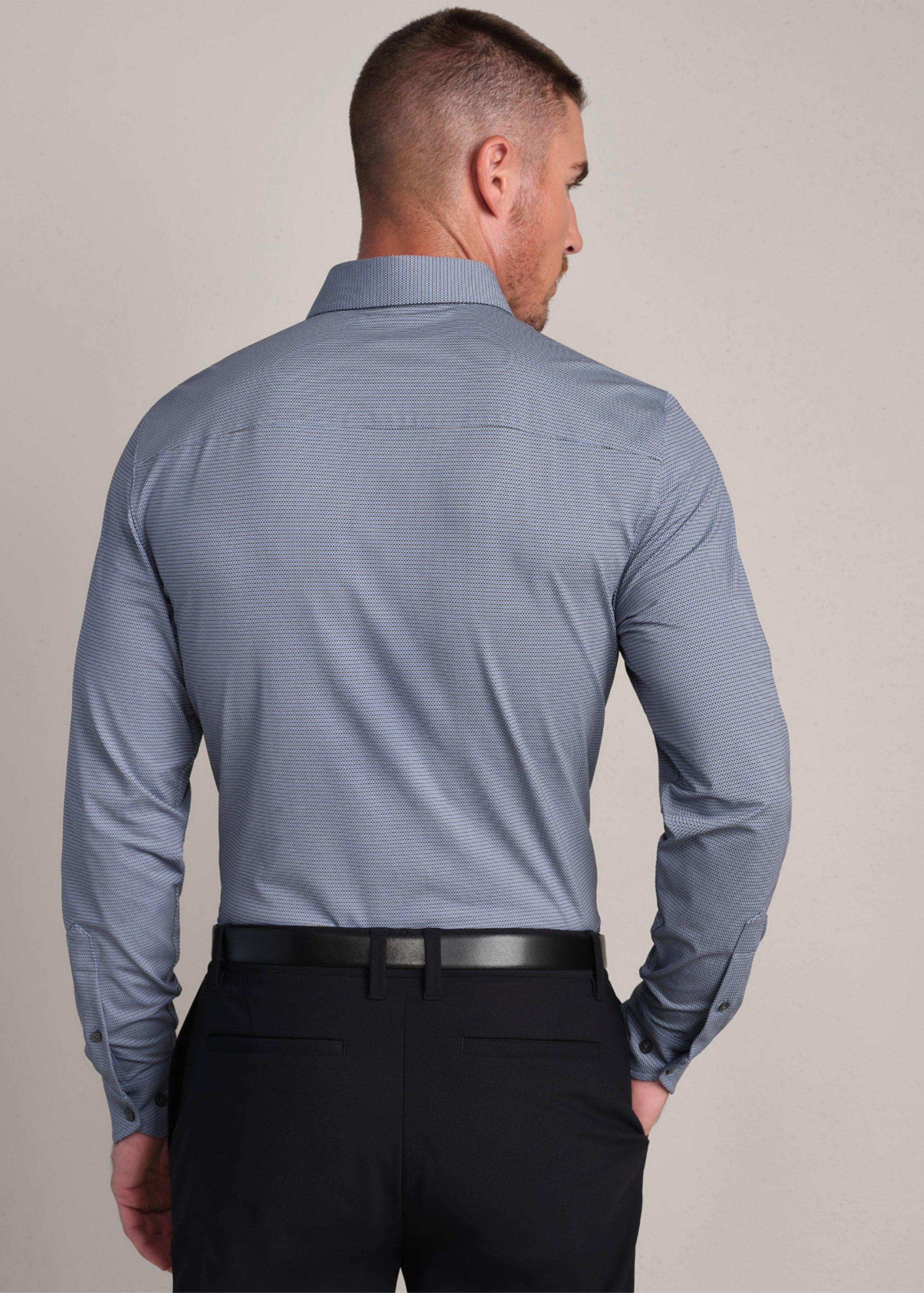 - Reinforced collar with non-removable collar stays for a polished look