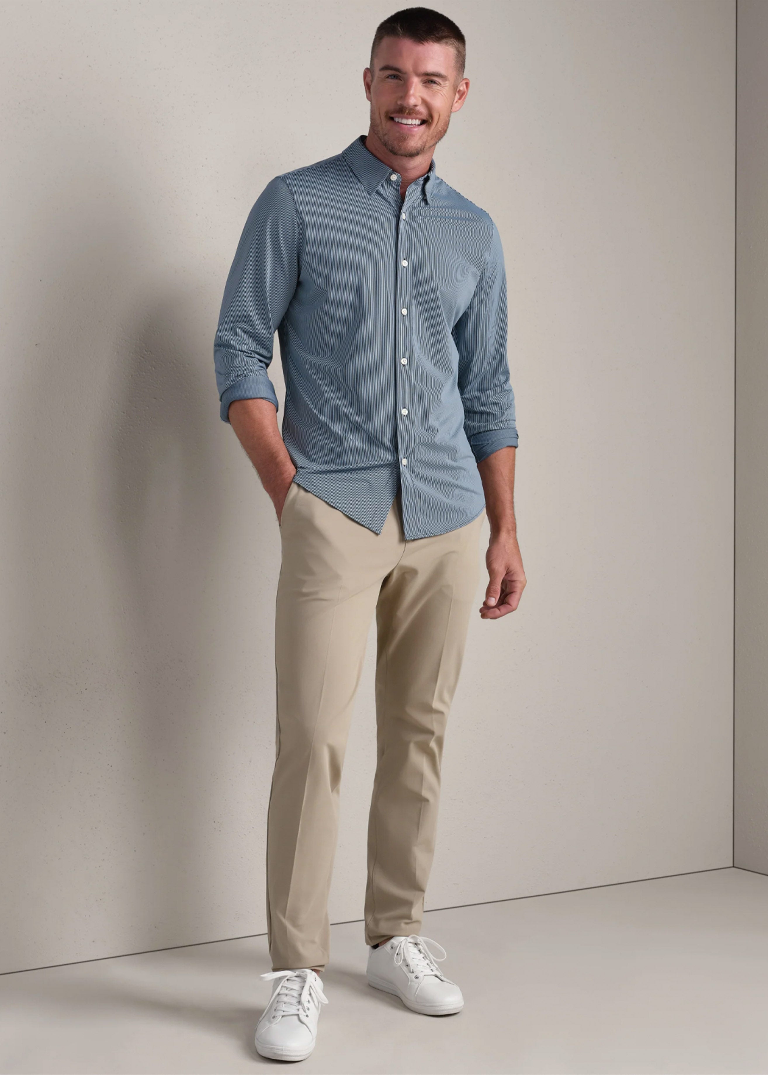 - Lightweight dress shirt with stretch