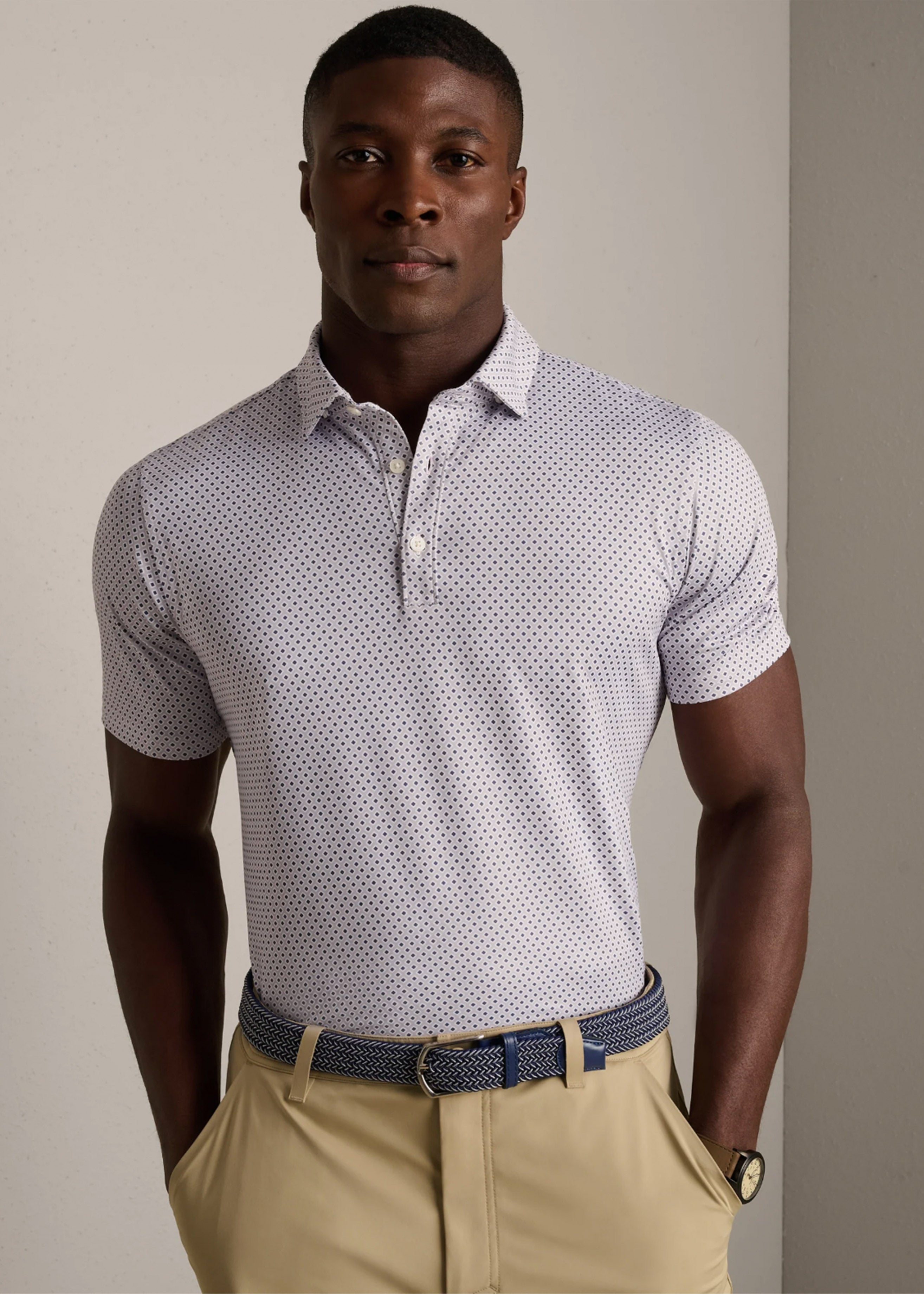 New to the game. Built like it’s always belonged.The Drive Time Polo introduces a refined new standard to your golf game, starting with an architectural semi-spread collar and finishing with details that transition from the course to your next reservation. Anti-odor, moisture-wicking, and cooling tech work in the background while you move through the day because looking sharp should be the easy part.