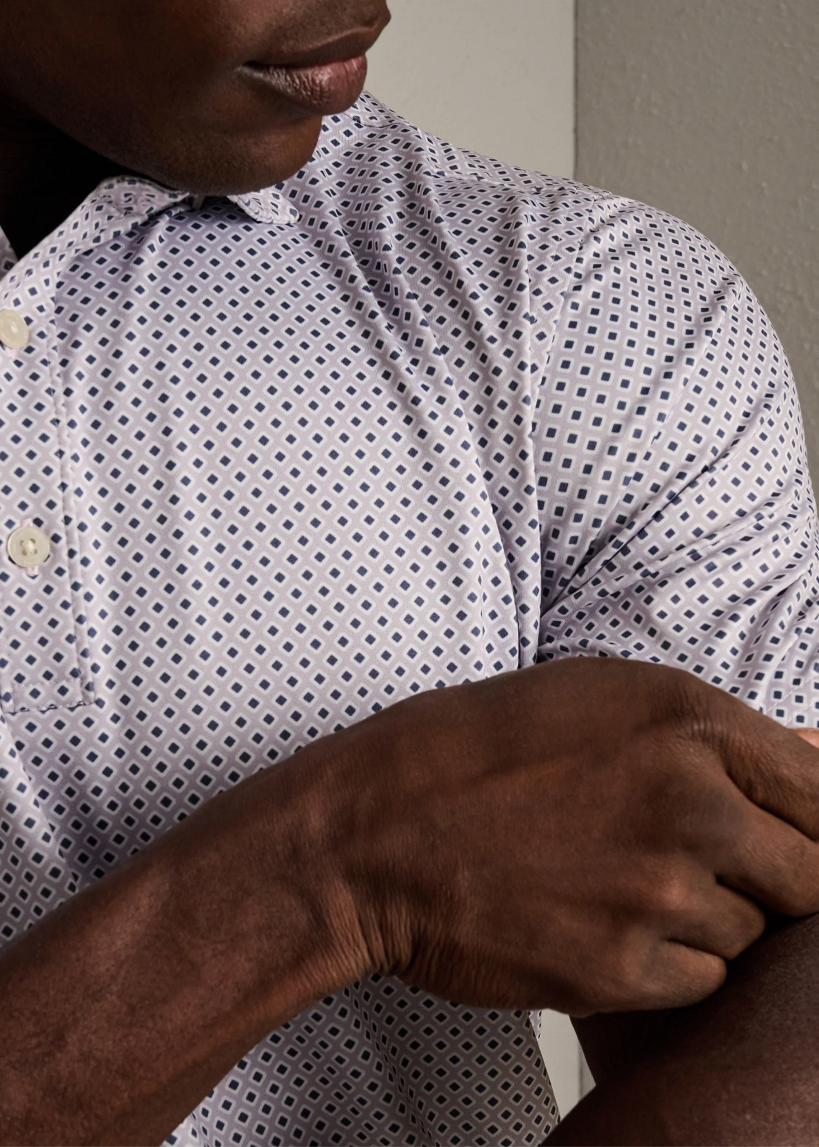 - Semi-spread collar with under collar buttons to prevent flapping