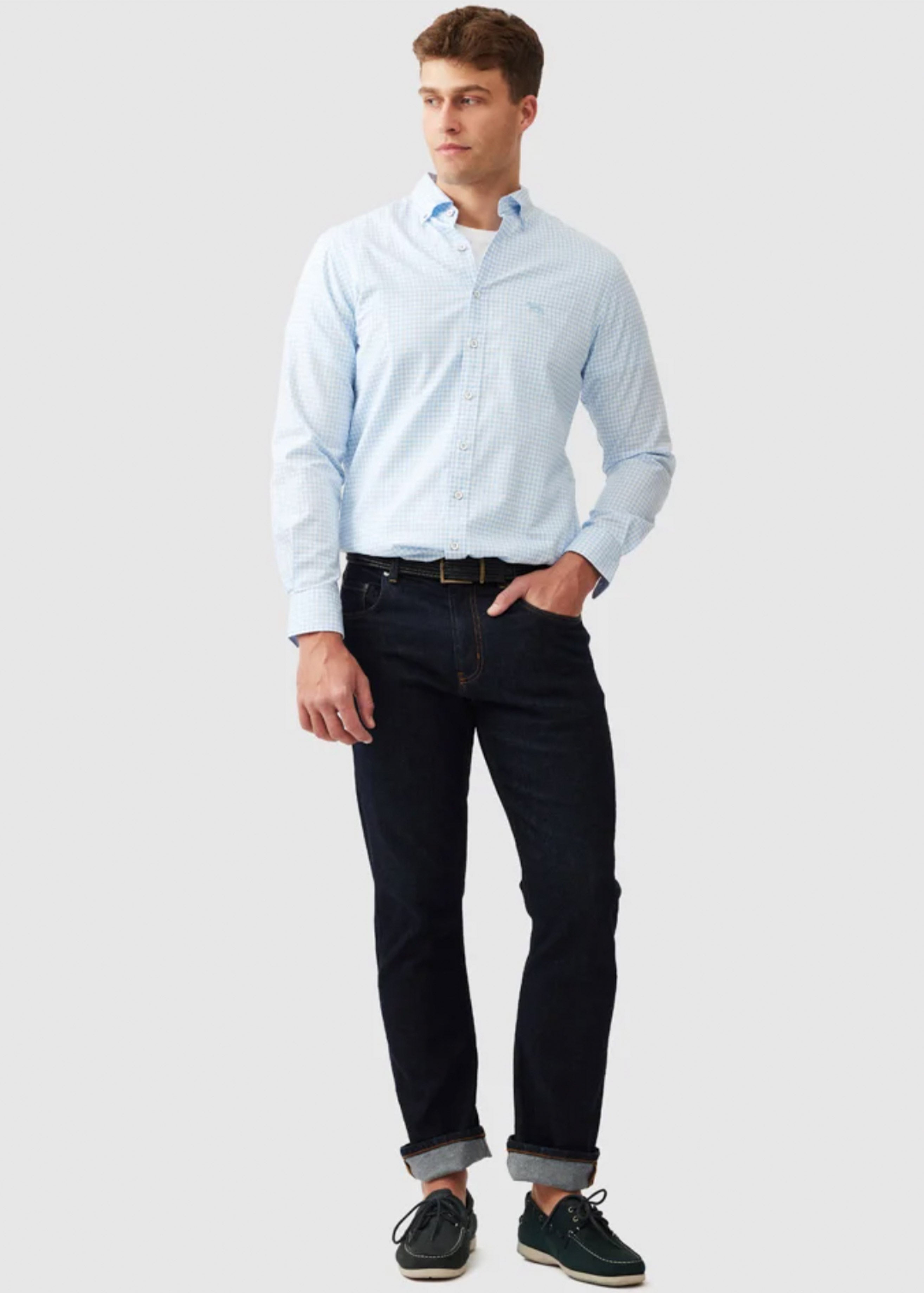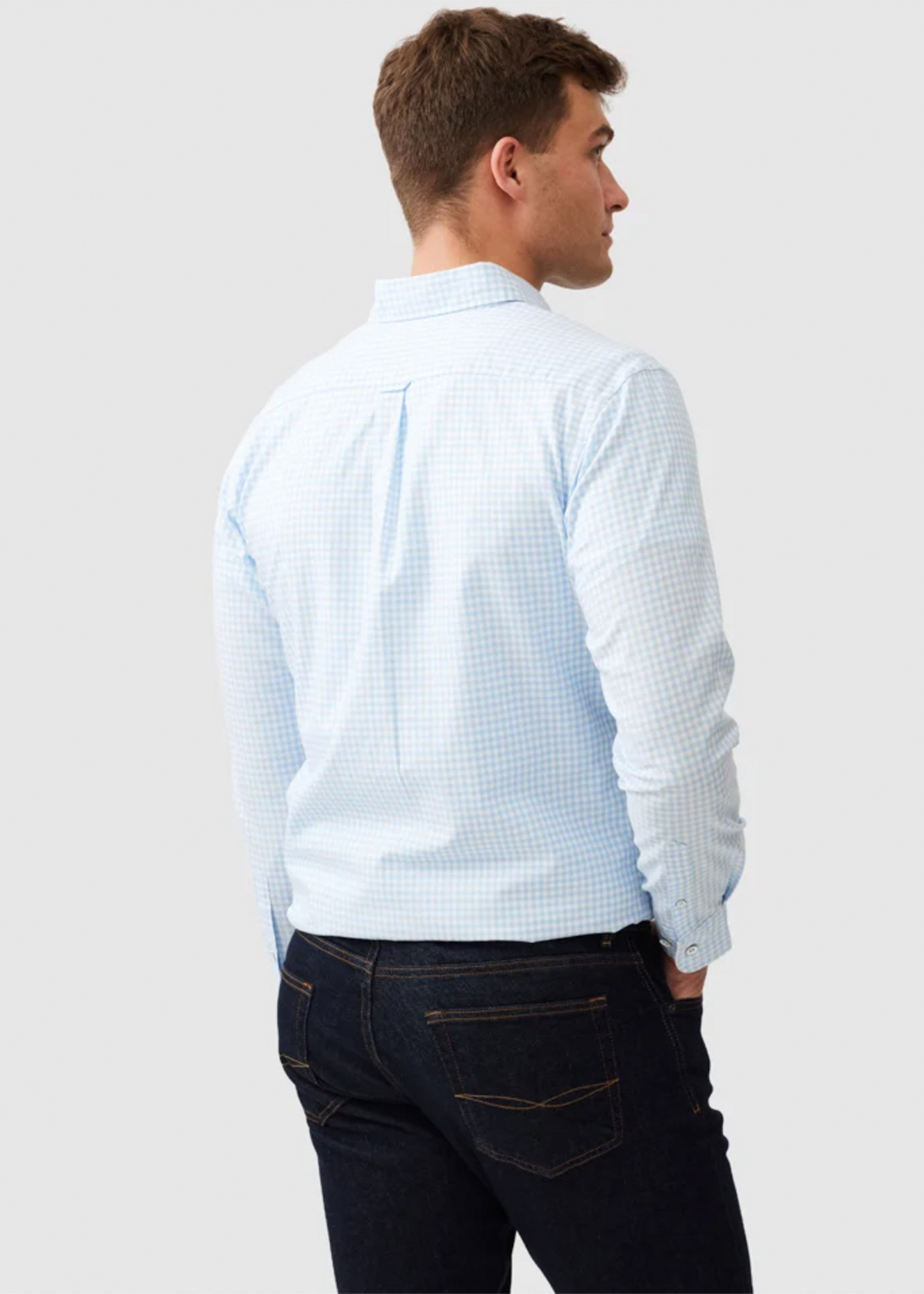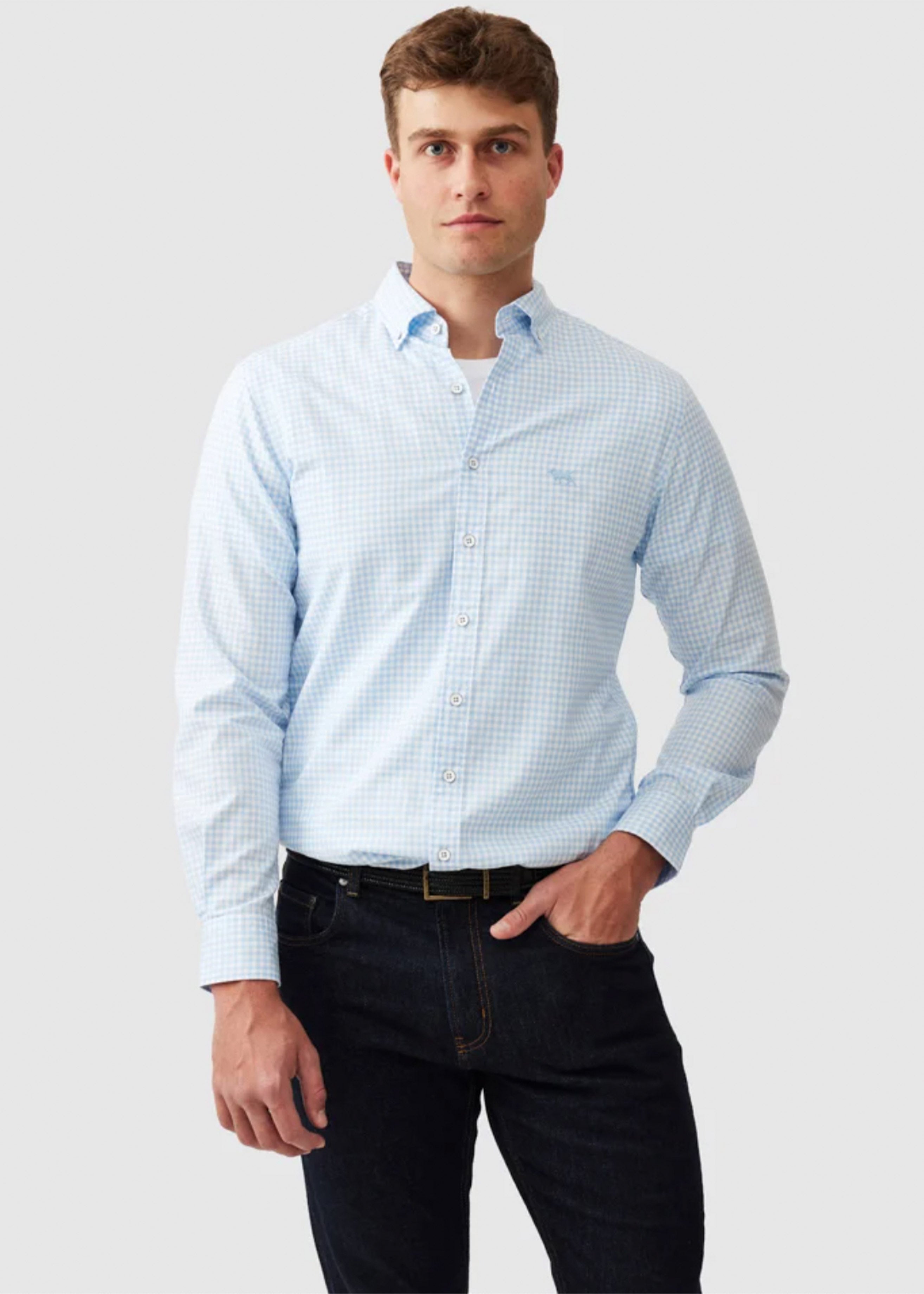 Designed for effortless style, this men's check shirt brings a polished look to your weekend rotation. Crafted from premium Italian 100% cotton, this shirt is pre-washed for a soft feel. It features a spread button-down collar, a front placket detailed with vintage metal buttons, and adjustable rounded barrel cuffs. Our signature Pointer logo is embroidered on the chest, adding a subtle touch of character. A box pleat and hanger loop at the back yoke ensure a greater range of movement. This shirt is cut in a Sports Fit, a slim fit that is fitted across the chest and shoulder for a modern look. Pair it with dark chinos for a refined casual ensemble, or wear it open over a plain tee for a relaxed weekend aesthetic.
