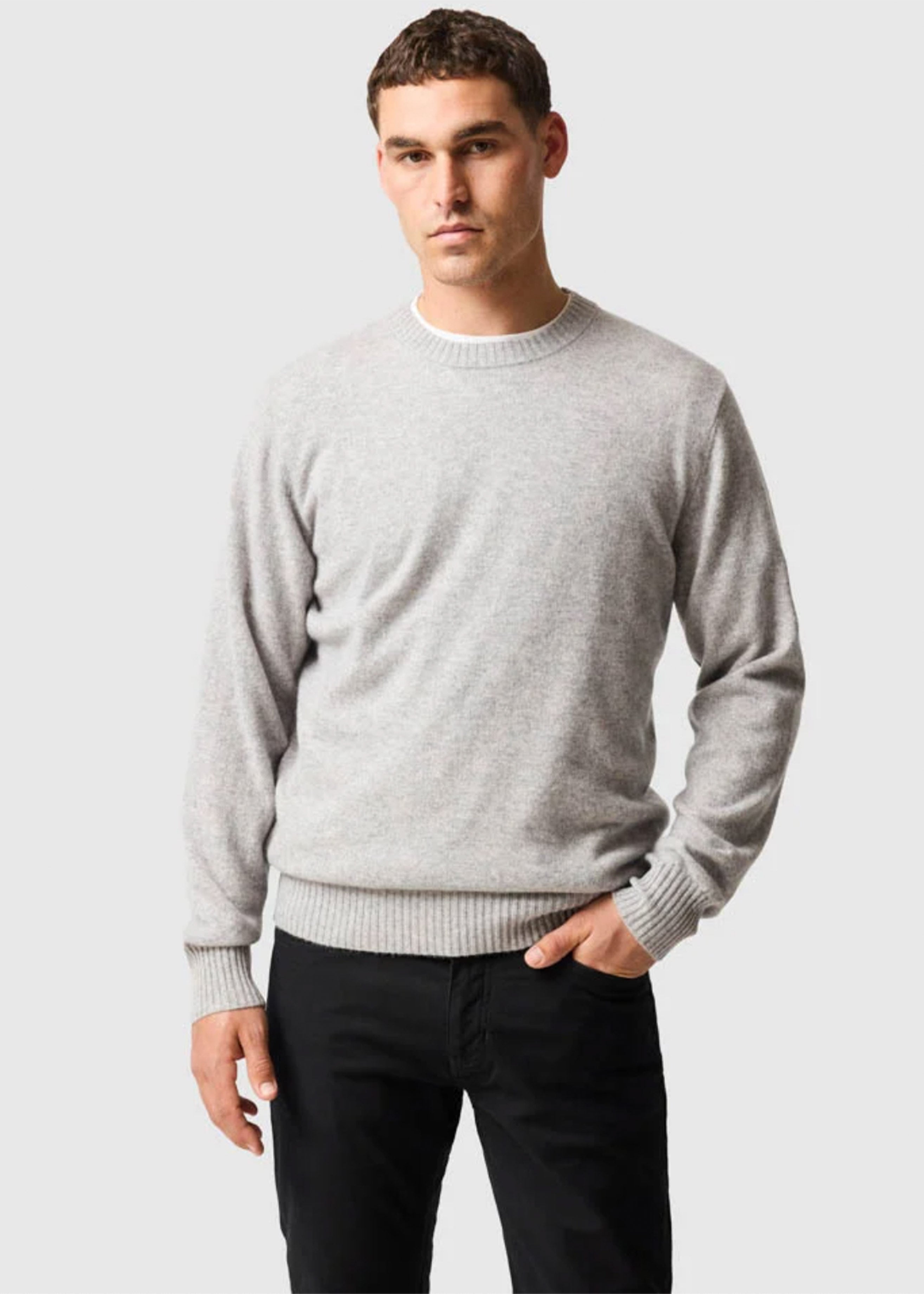 A refined layering essential, this classic crew knit is crafted from a soft Australian wool and cashmere blend for warmth, comfort, and a luxurious handfeel. Available in a curated range of colours, it pairs effortlessly with shirting, overshirts, or jackets, making it a versatile staple for both casual and elevated winter styling. Timeless in design and supple in texture, it’s the perfect foundation piece for the season.