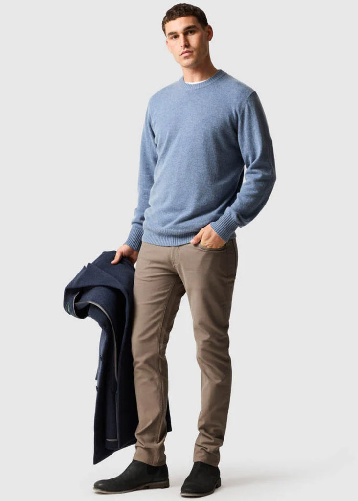 A refined layering essential, this classic crew knit is crafted from a soft Australian wool and cashmere blend for warmth, comfort, and a luxurious handfeel. Available in a curated range of colours, it pairs effortlessly with shirting, overshirts, or jackets, making it a versatile staple for both casual and elevated winter styling. Timeless in design and supple in texture, it’s the perfect foundation piece for the season.