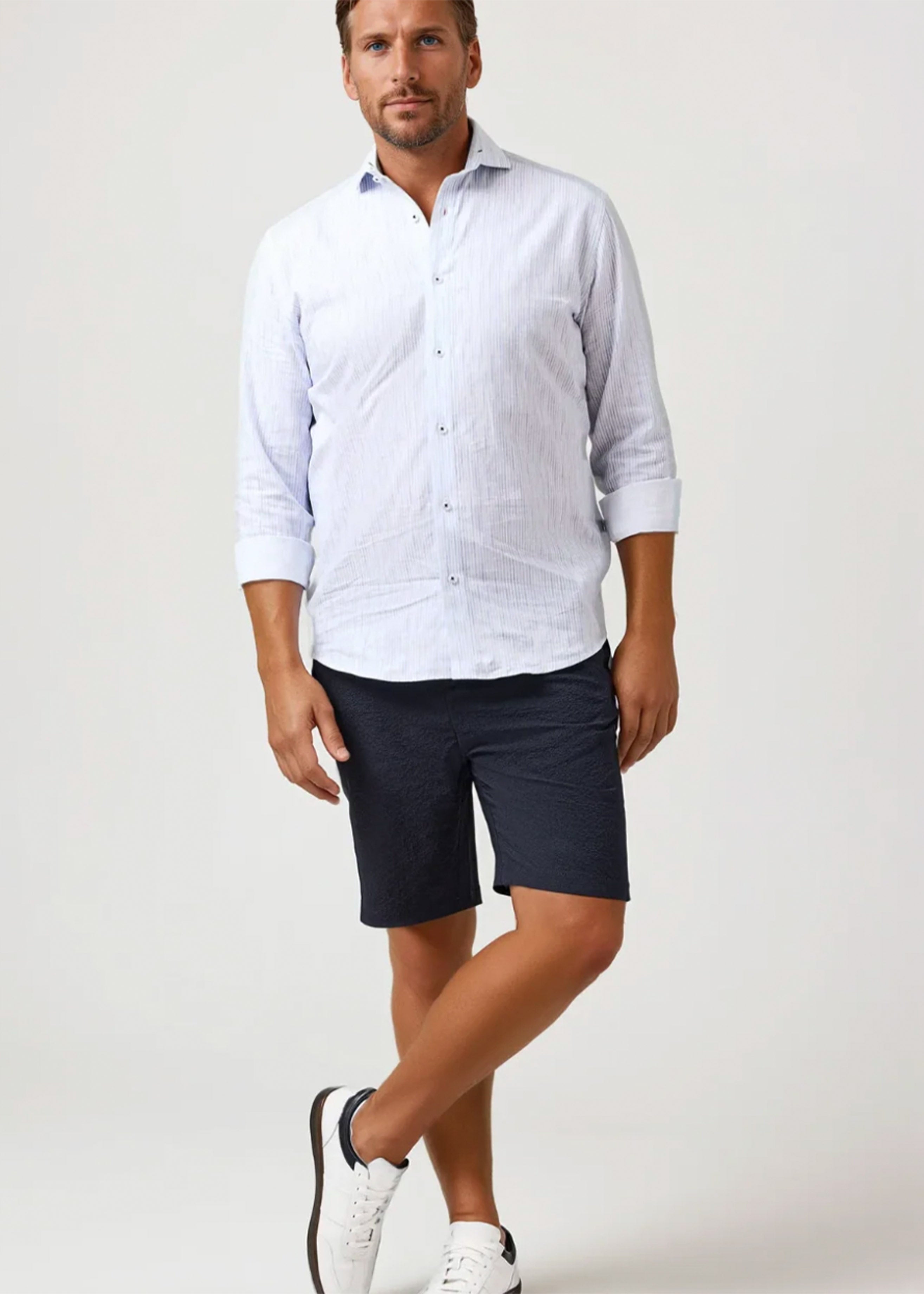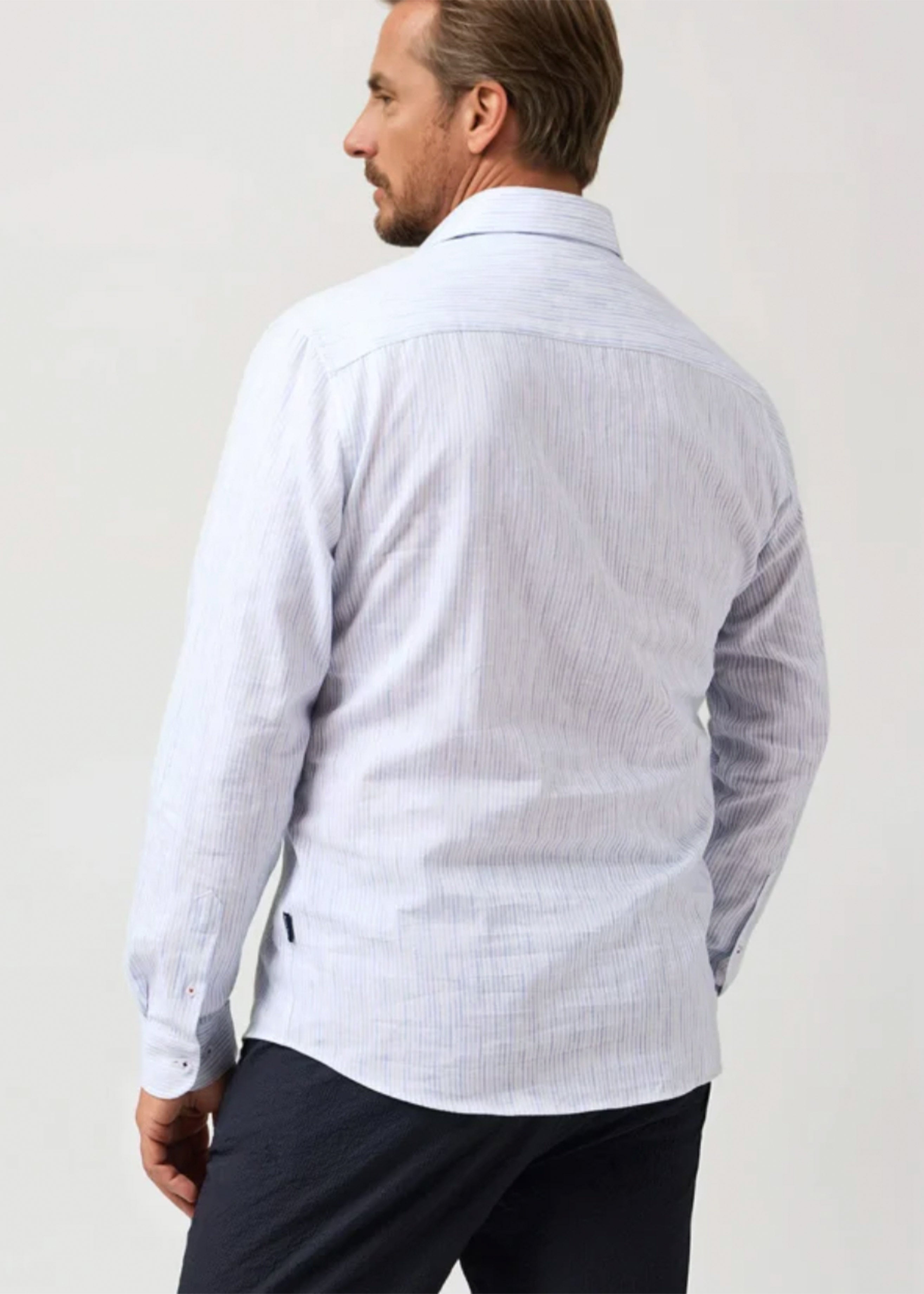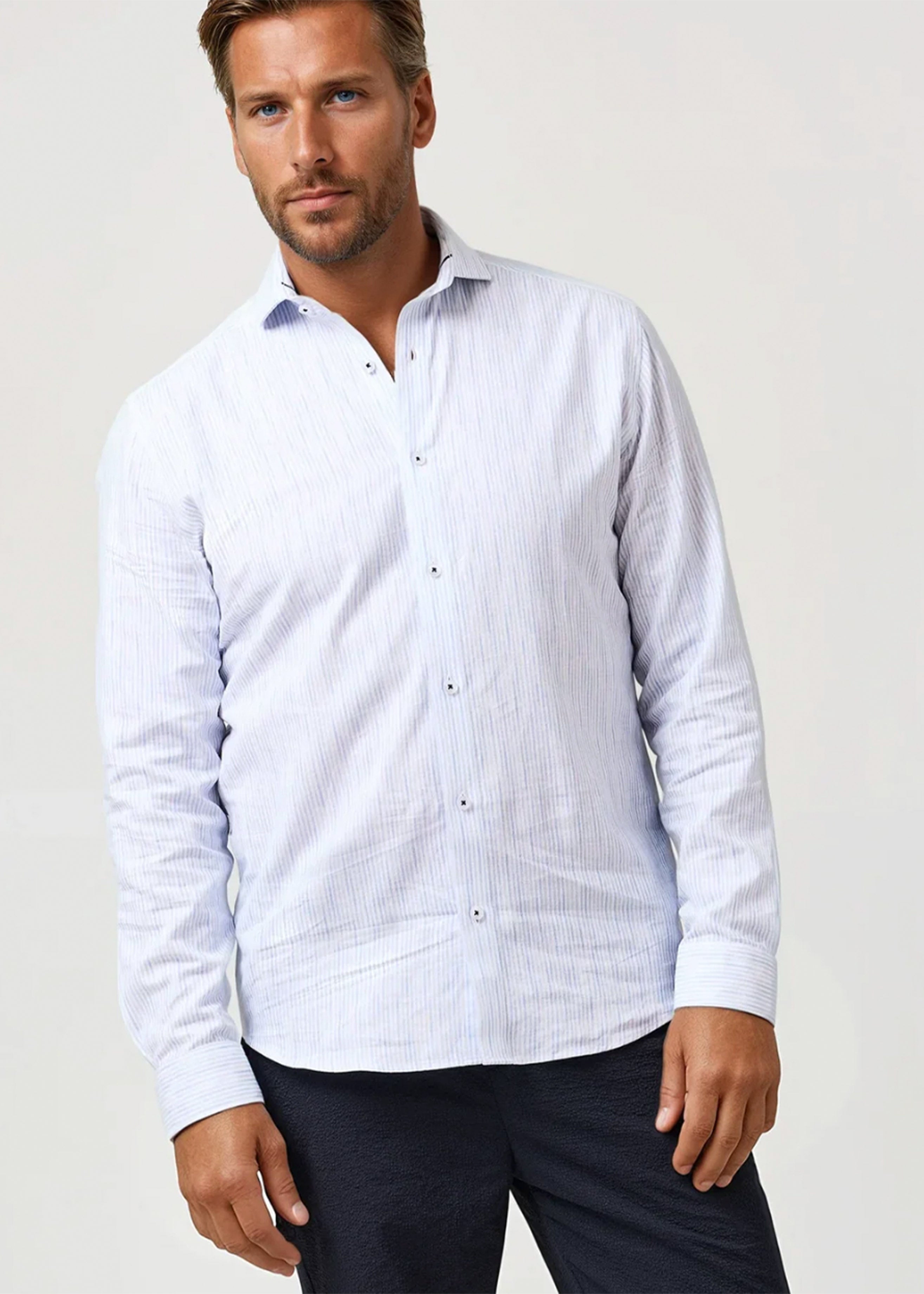 The Light Blue Striped Linen Shirt from our Buonasera Collection blends relaxed refinement with elevated texture. Crafted in a printed cotton-linen blend, this effortless essential delivers breathable comfort with timeless character.