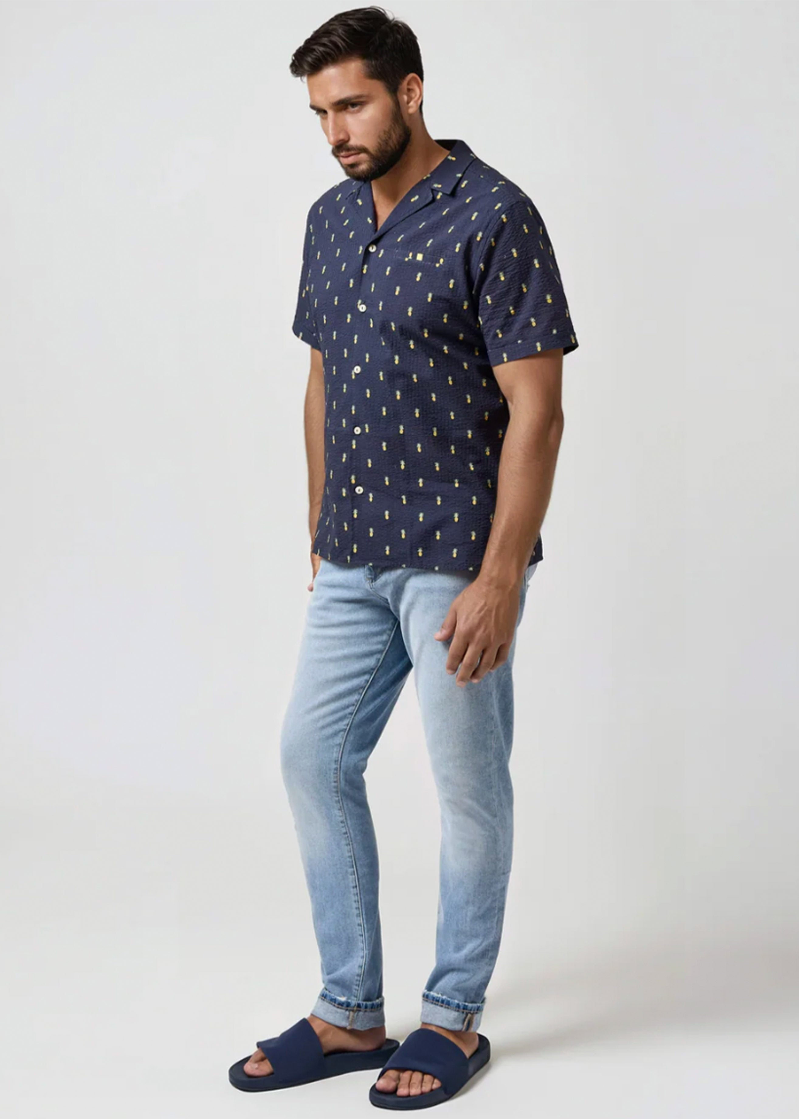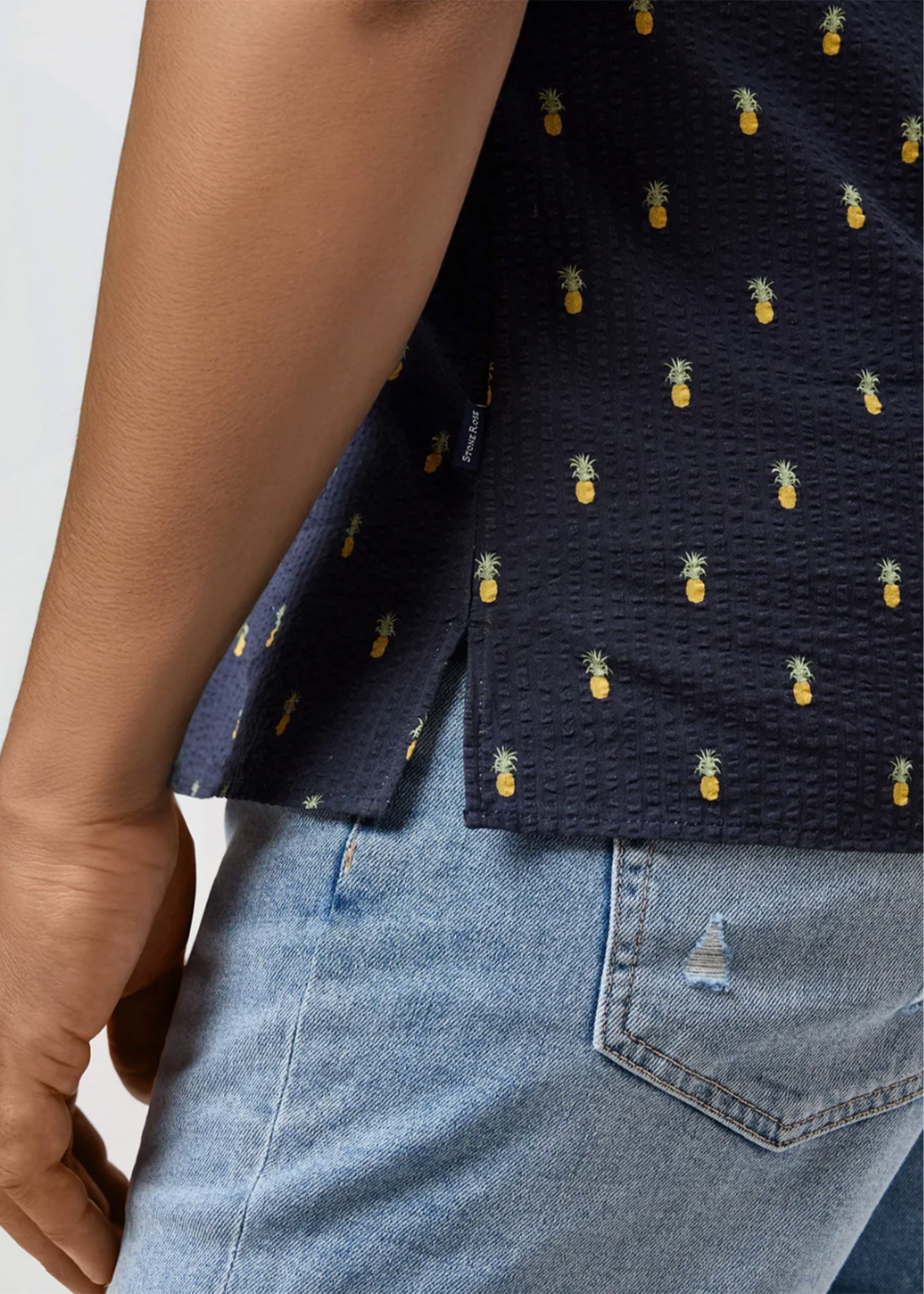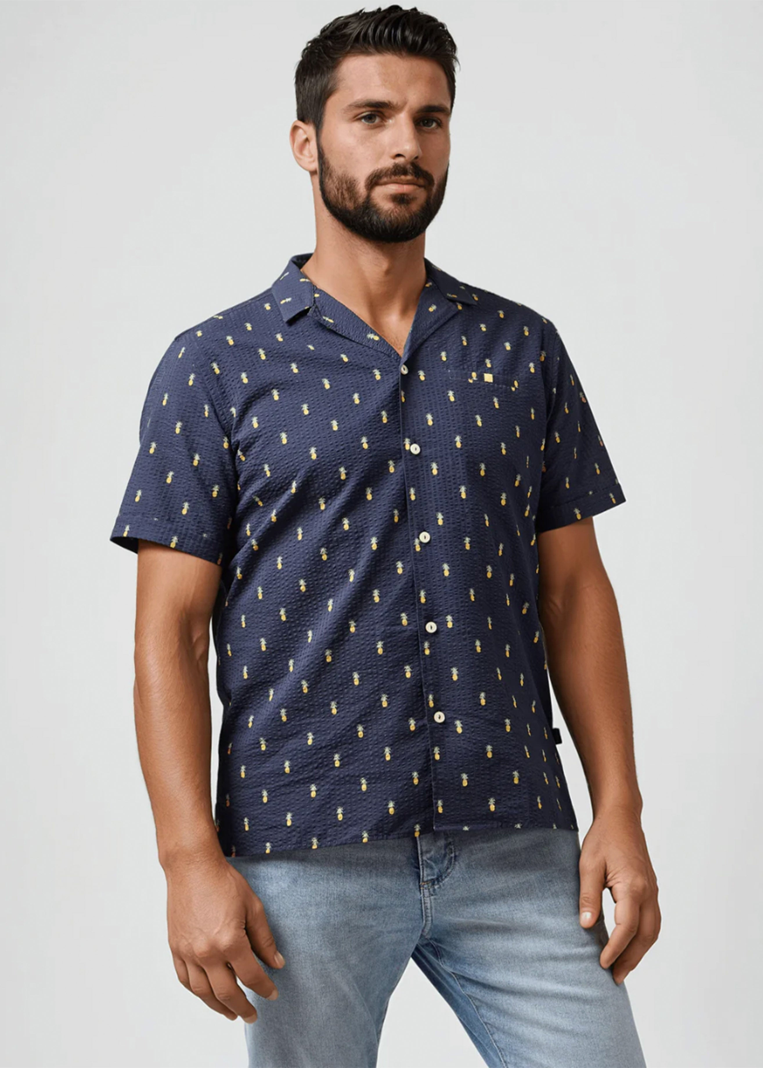 The Seersucker Pineapple Print Shirt from our Boardwalk Collection is crafted from cotton yarn-dyed seersucker with a printed Pineapple pattern, offering classic character with a playful edge. Its signature puckered texture enhances airflow and breathability, while the all-natural cotton fabric delivers lightweight comfort and effortless versatility.