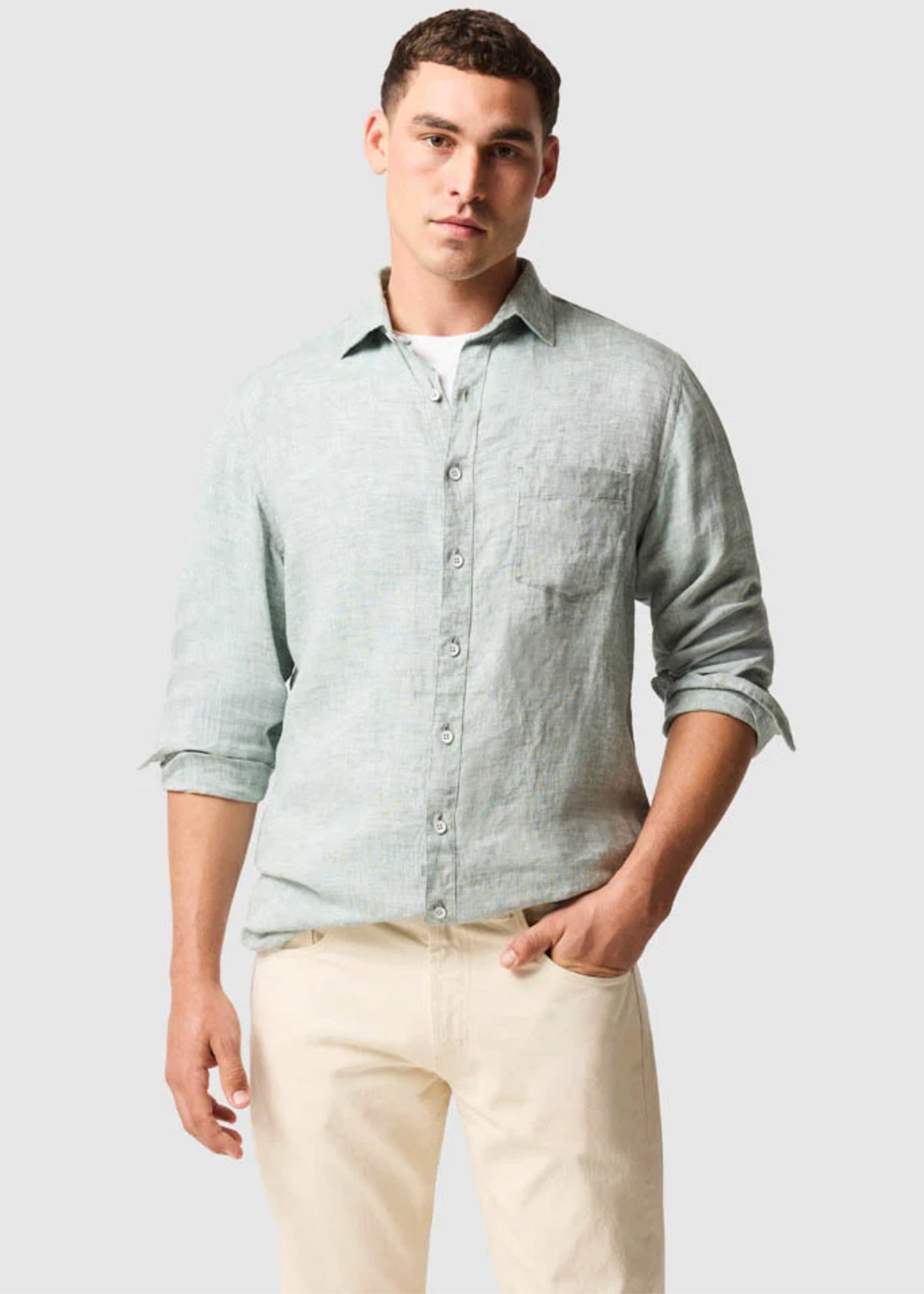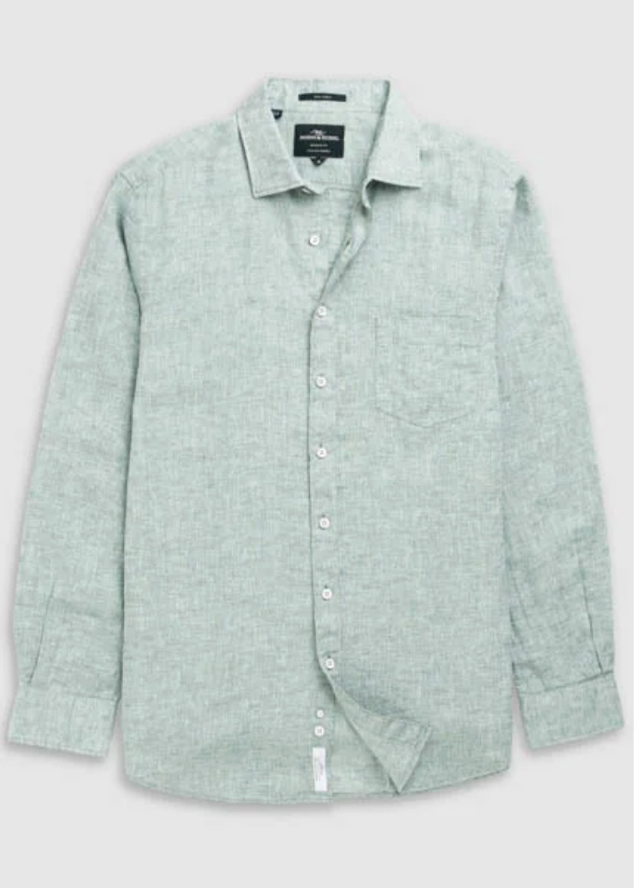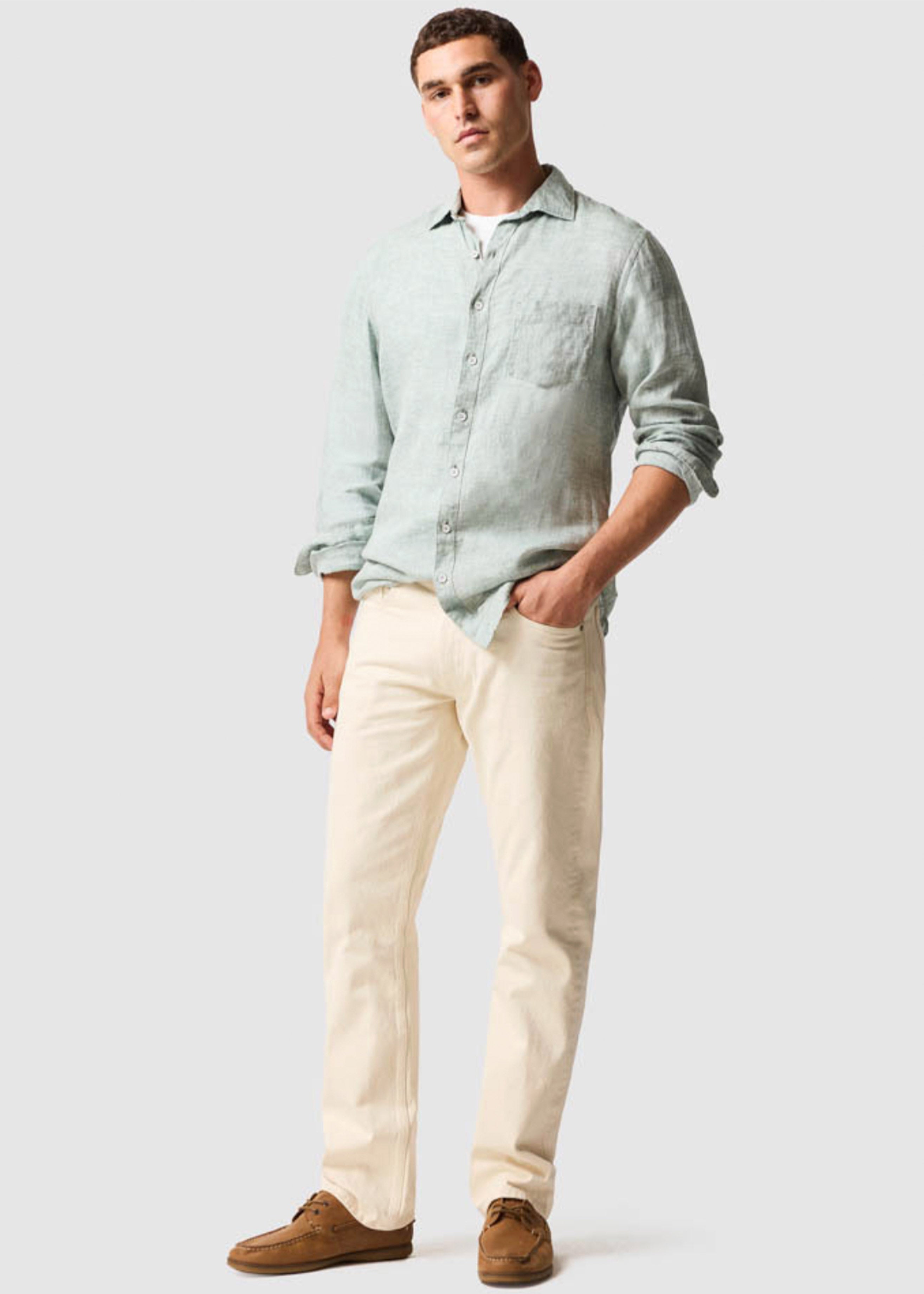This shirt is woven from yarns that feature a unique delave wash, which lends the fabric a slightly faded look and soft feel. Milled in Italy, from premium linen harvested in France and Belgium and certified by European Flax. Pre-washed for easy going feel, the fabric will continue to soften over time and with each and every wash.