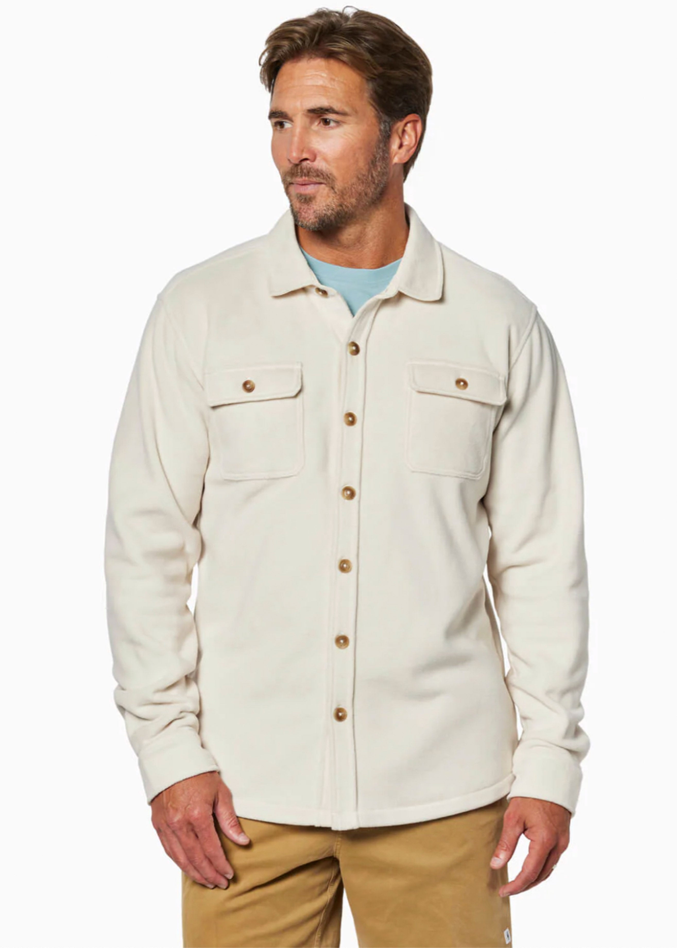 - Men’s button-up long sleeve Polartec® fleece shirt