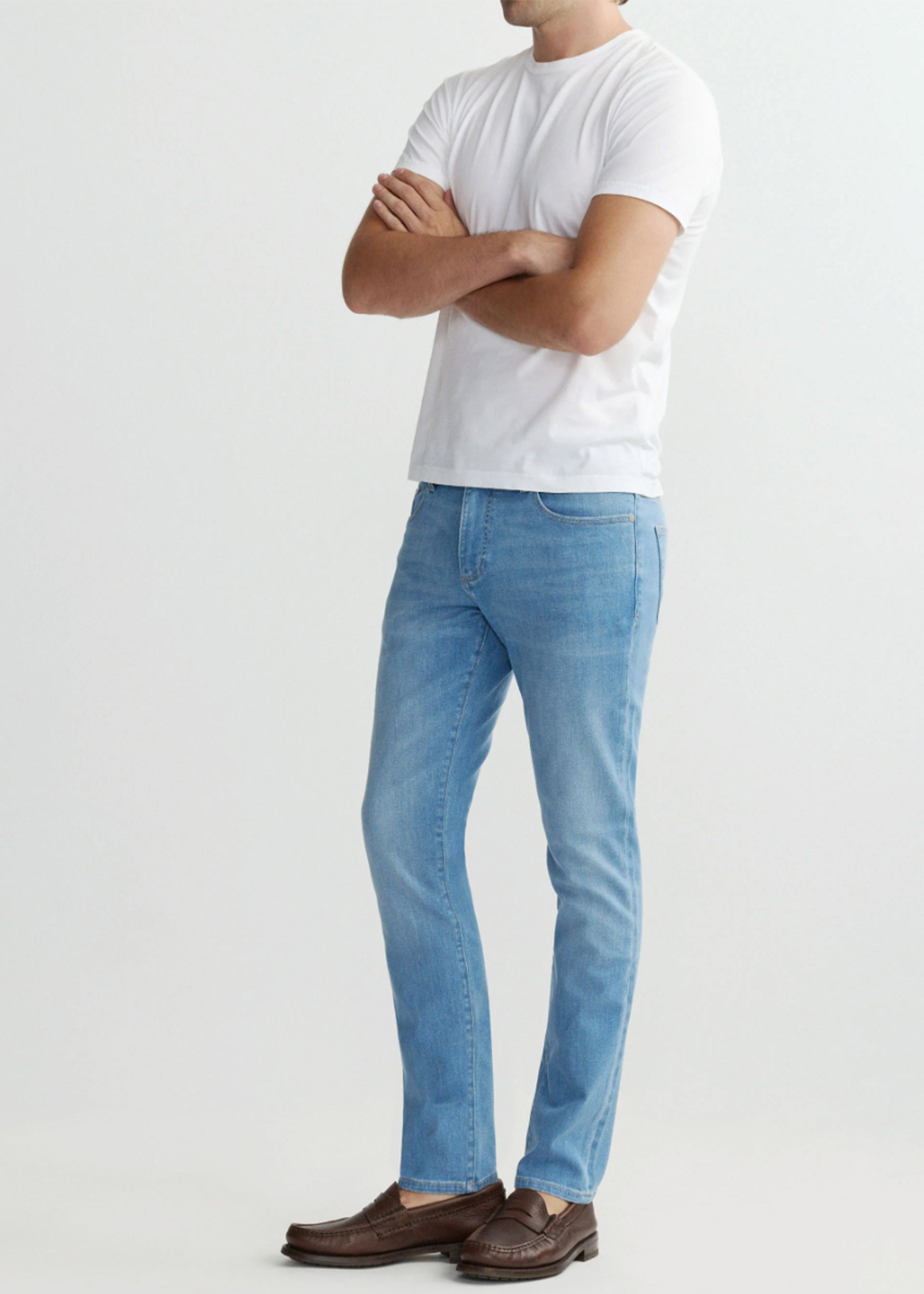 Nick is a true slim fit with a streamlined leg that is lean through the thigh towards the ankle.
