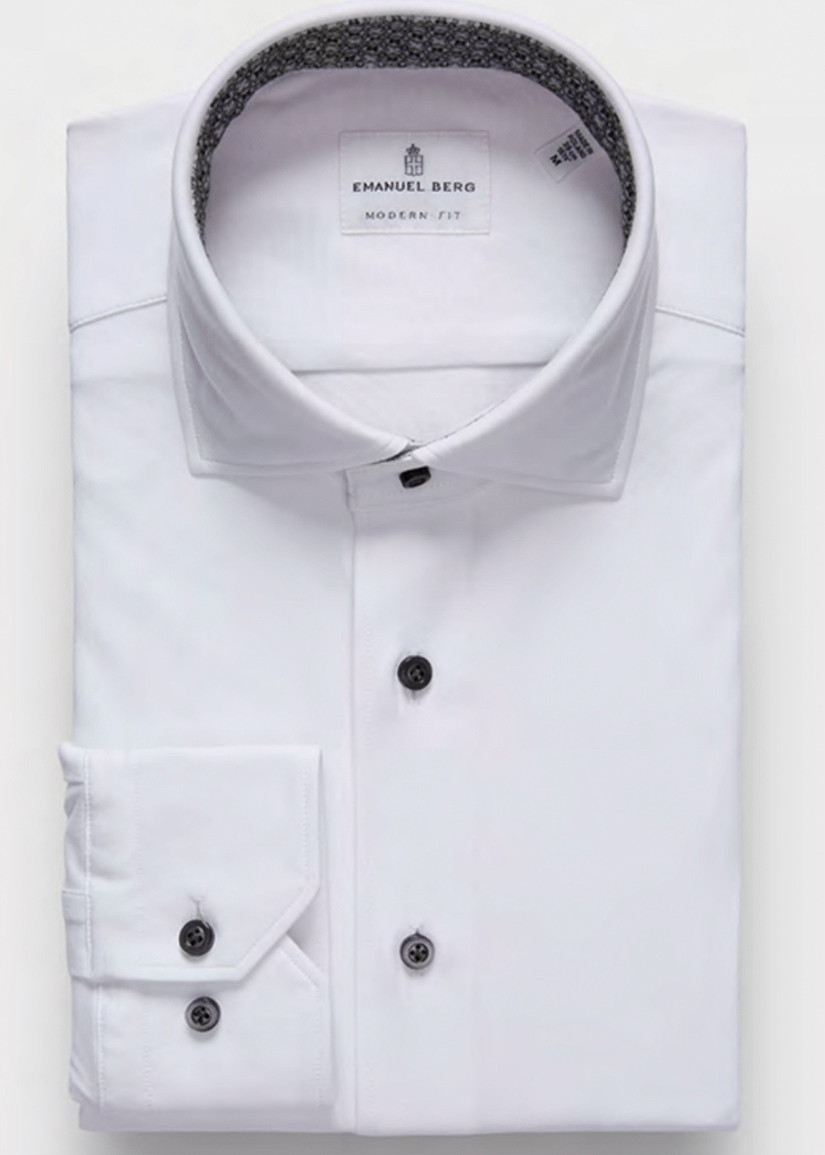 Emanuel Berg Modern 4 Flex Stretch Knit Shirt w/ Contrast | White - M is backordered and will ship as soon as it is back in stock.