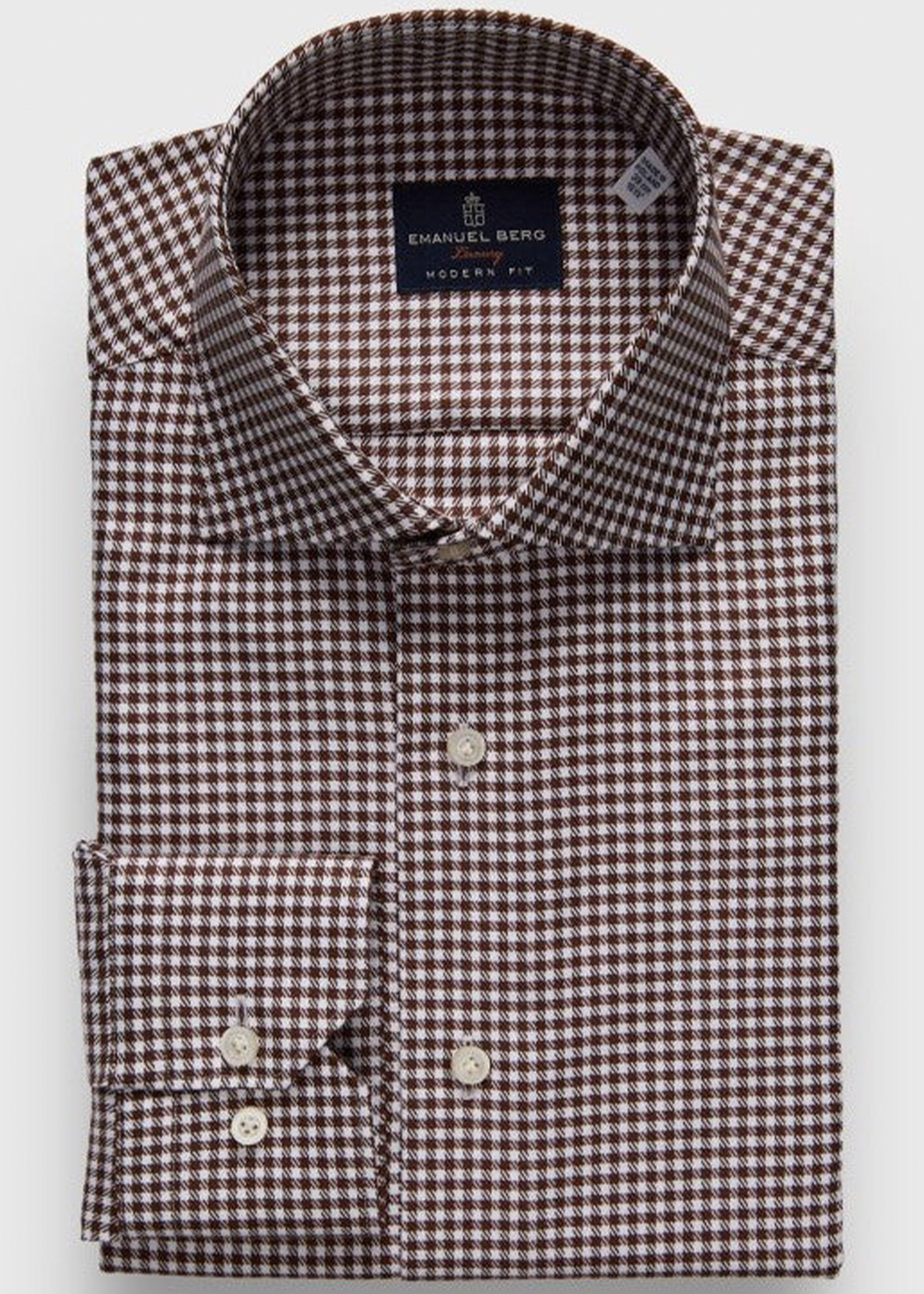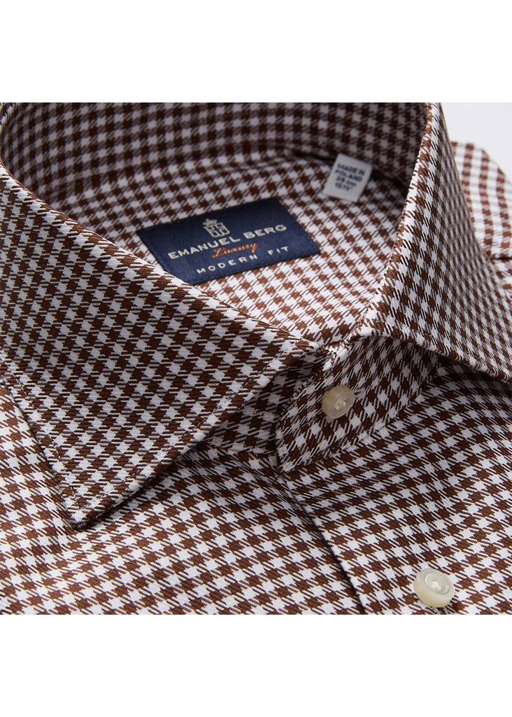 Emanuel Berg Natural Stretch Yoga Twill Premium Luxury Dress Shirt | Medium Brown