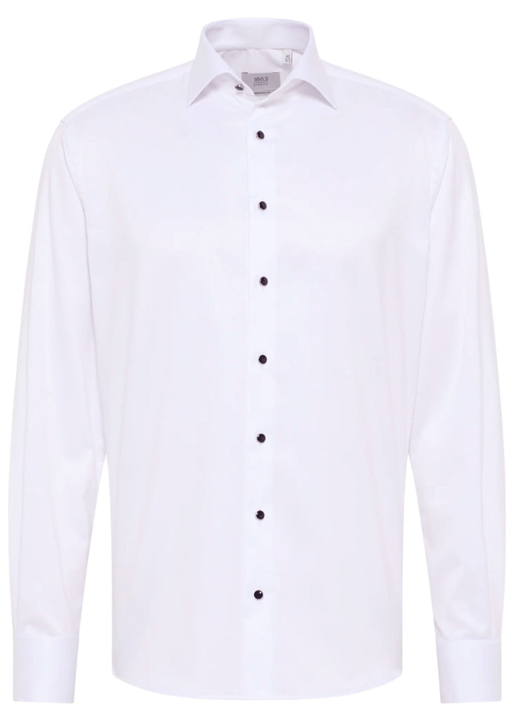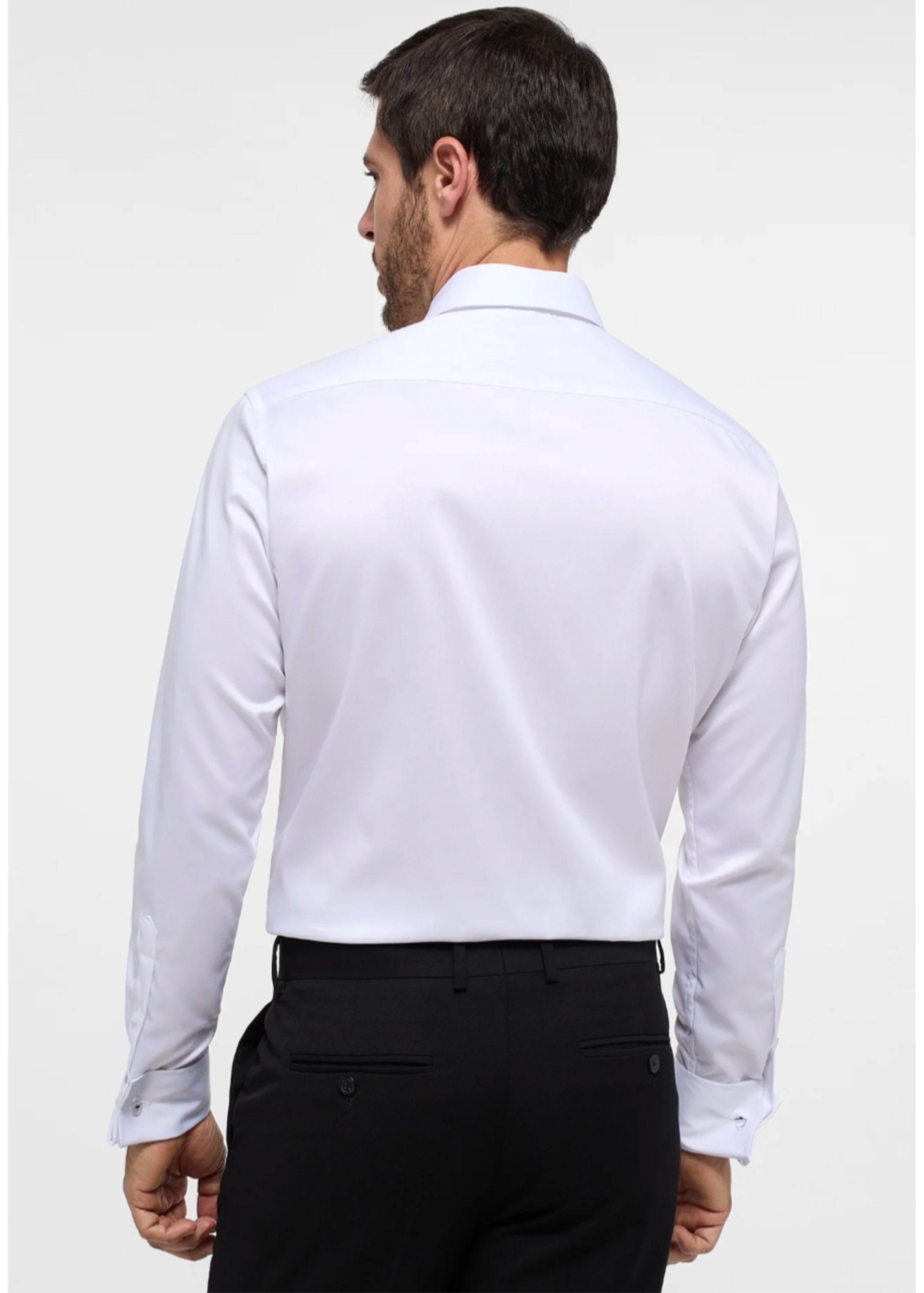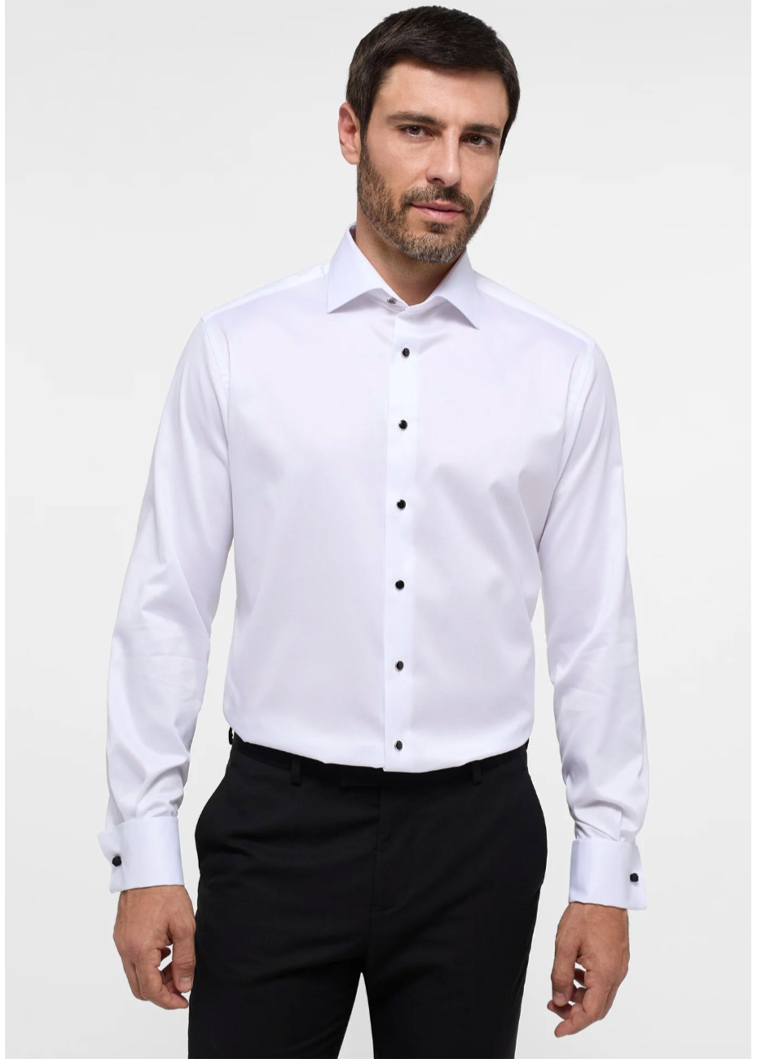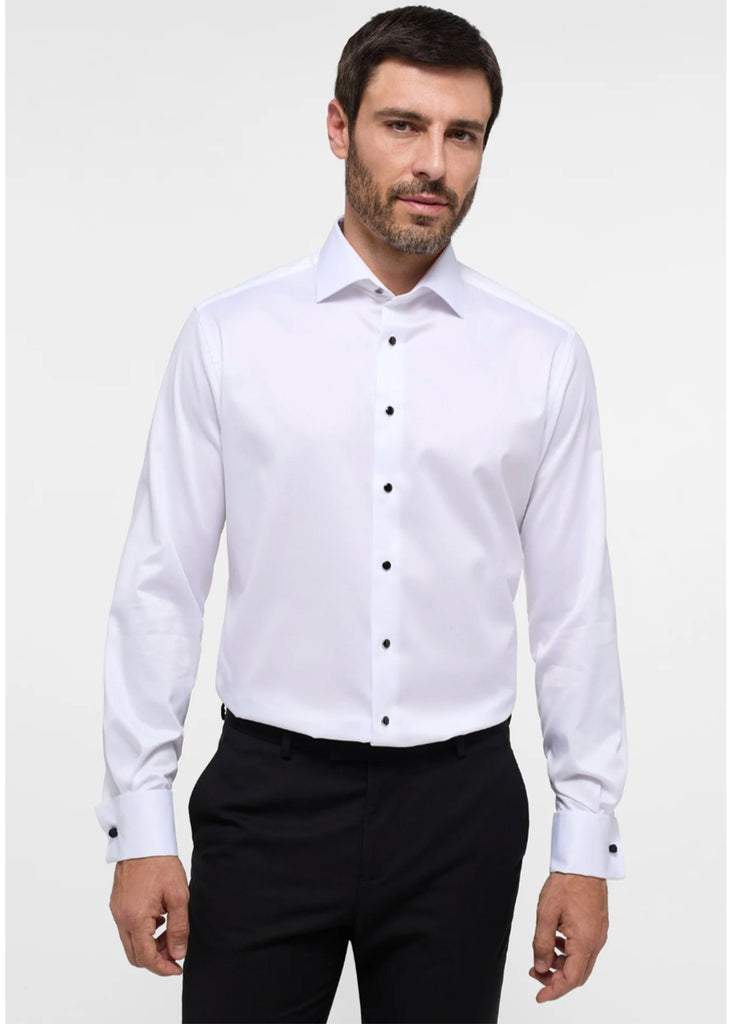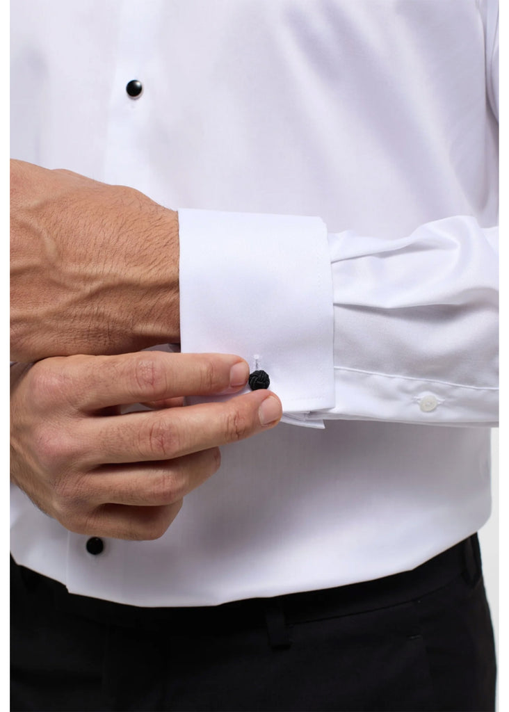 This formal shirt, crafted from premium twill, is designed for distinguished events. It features fixed studs and French cuffs, delivering enduring elegance. Made from 100% non-iron cotton, it guarantees a sharp, polished look with easy care.