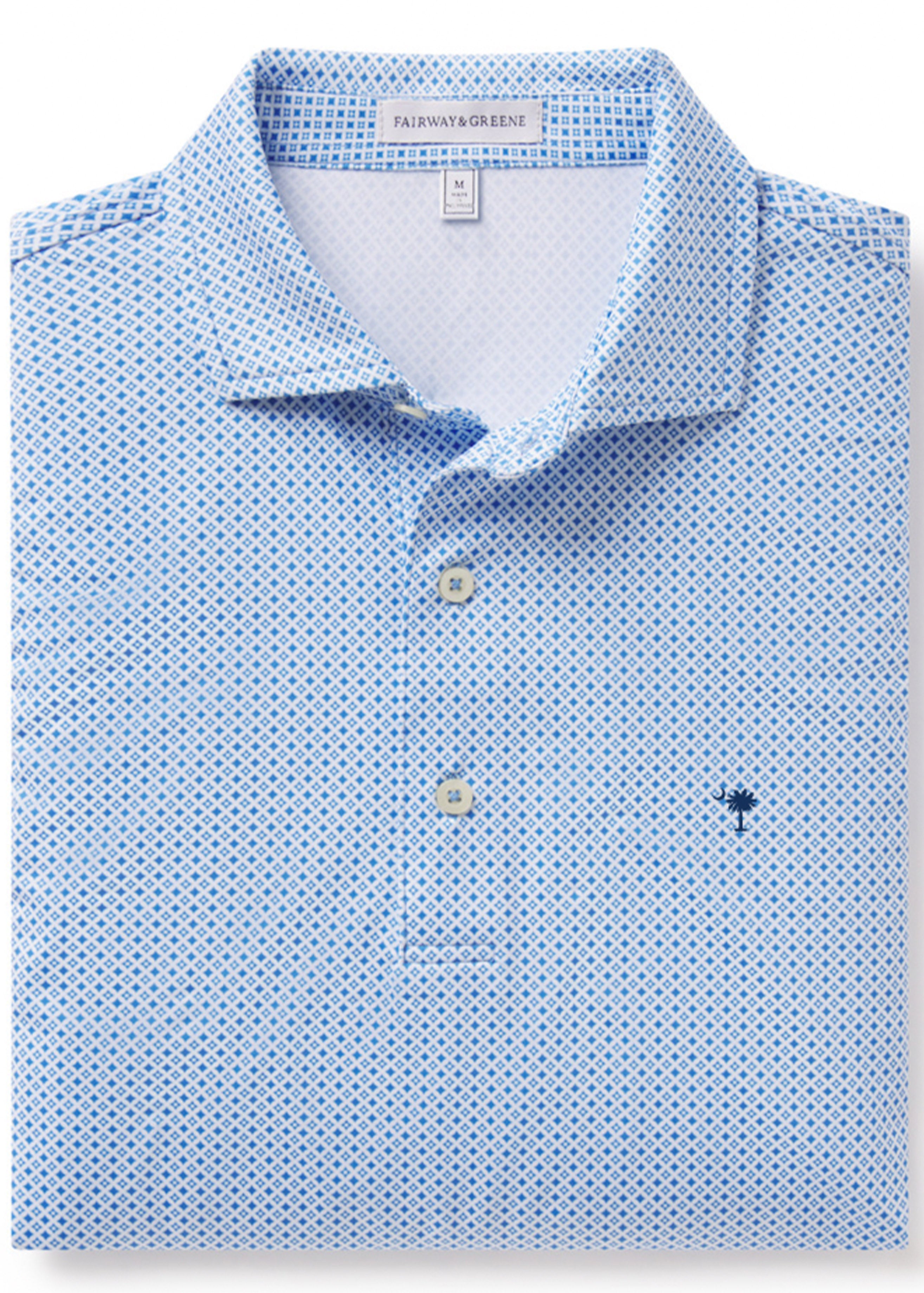 Fairway & Greene Men's Essex Print Polo w/ Palmetto and USA Embroidery | Baltic