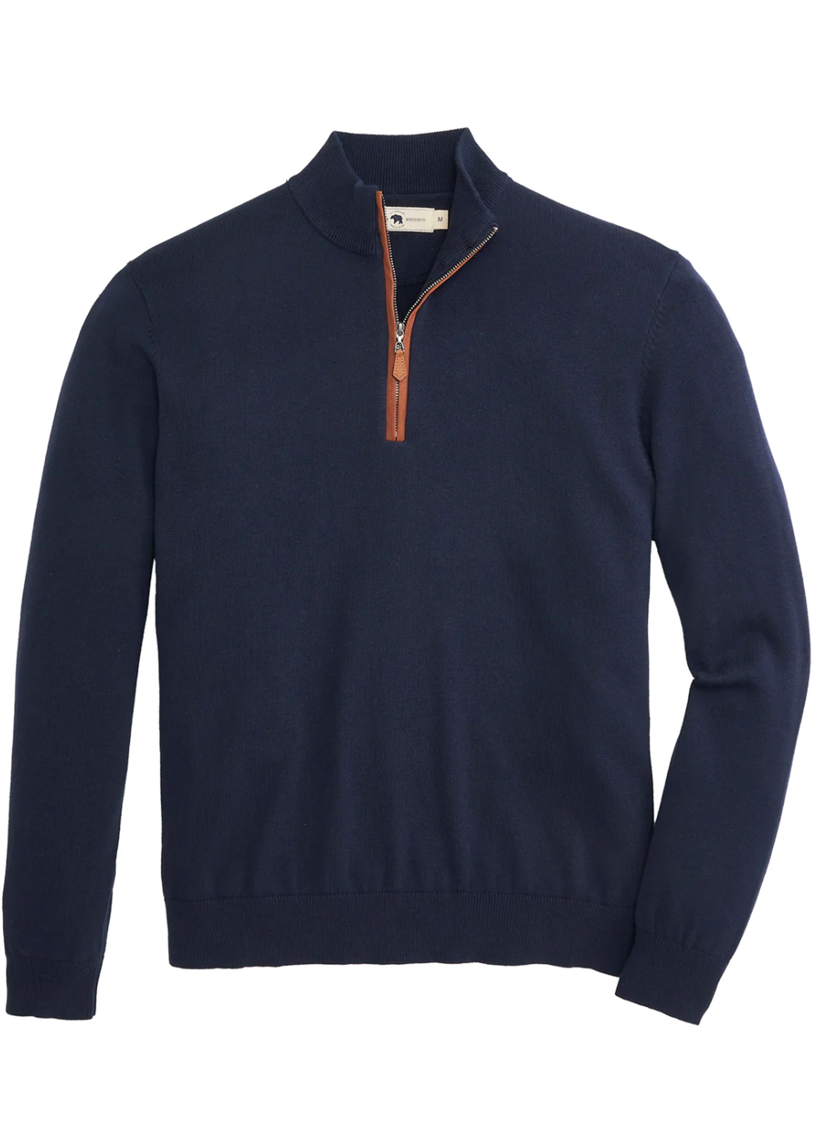Our best-selling sweater is back and better than ever... With a new and improved cotton and Merino Wool blend and classic suede details. Wear it with a pair of Five Pockets or under a sport coat. The Jackson 1/4 Zip is a lightweight layer that never goes out of style.