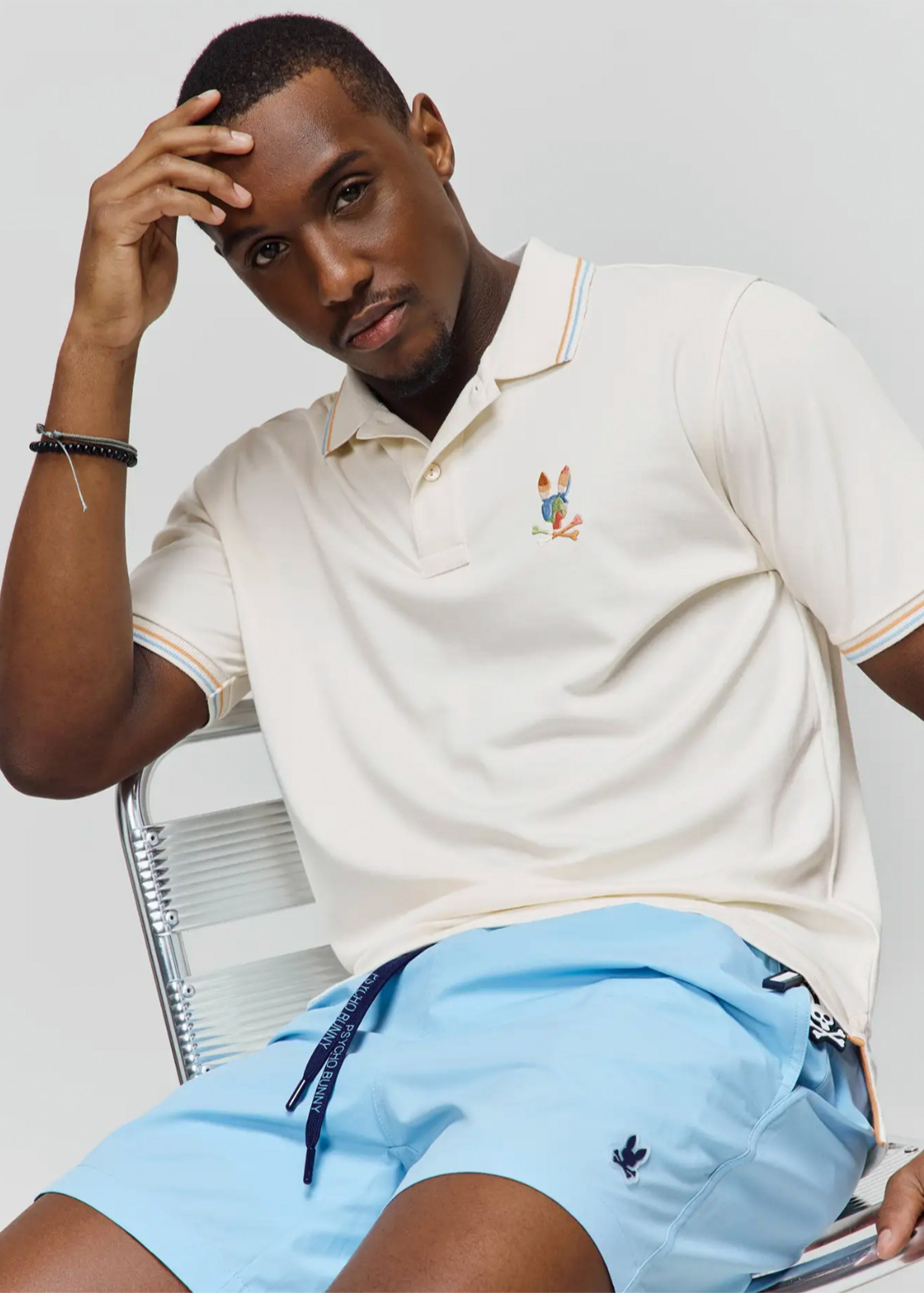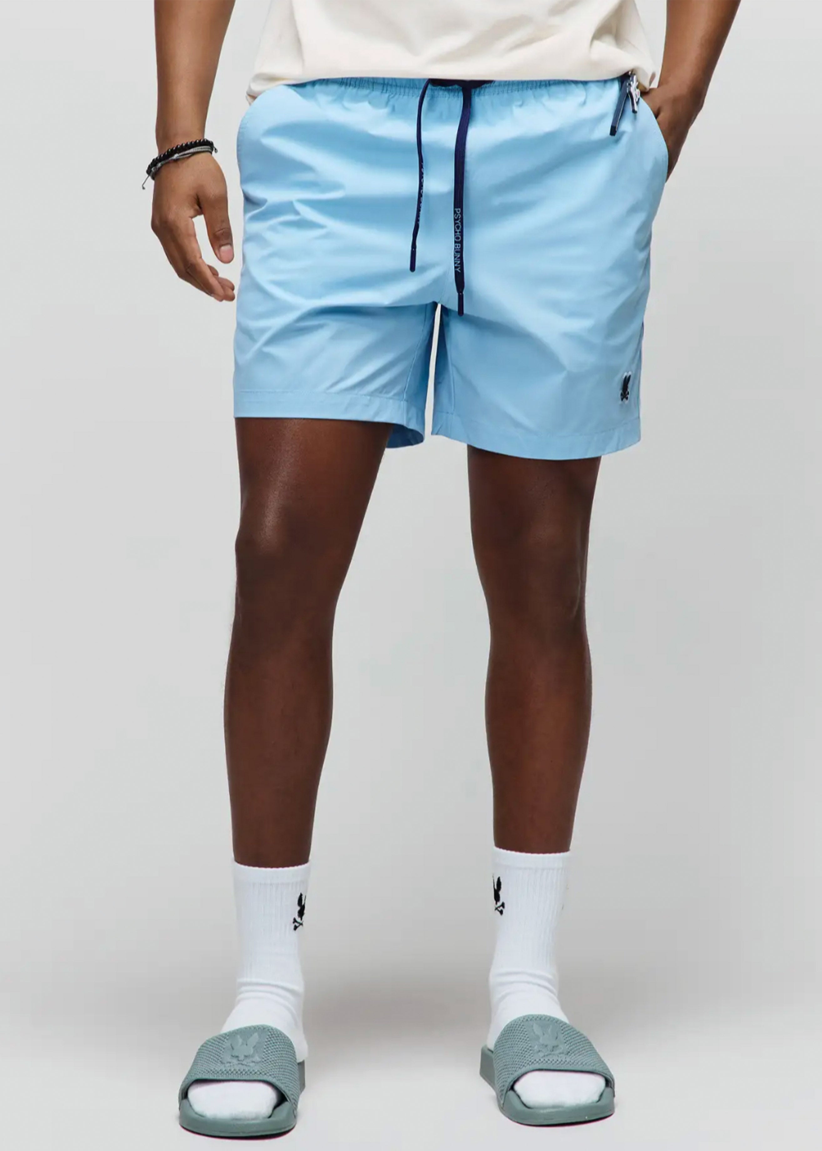 The Samos swim trunk features hydrochromic technology, which reveals a hidden Bunny pattern when the shorts come in contact with water. Mesh lining and a drawstring-stretch waistband allow for next-level comfort. Waterproof bag included in back pocket.