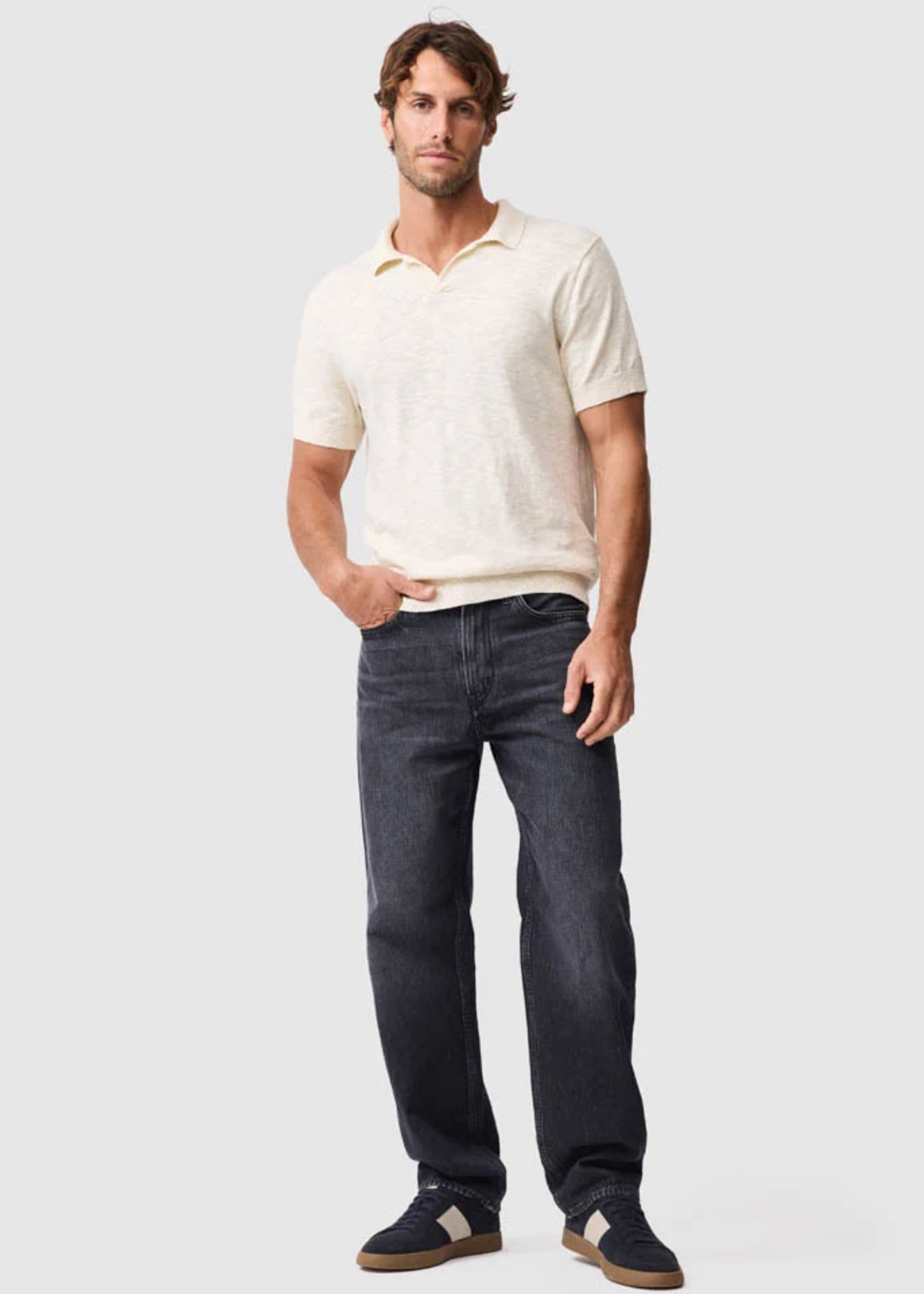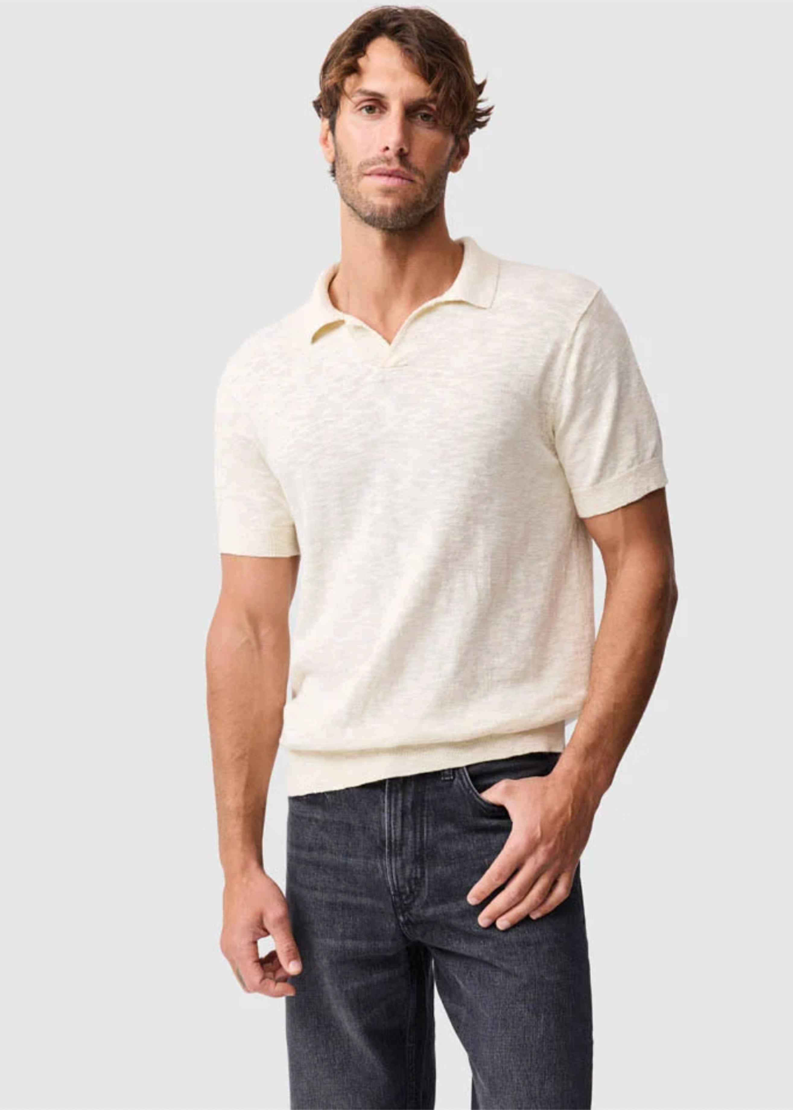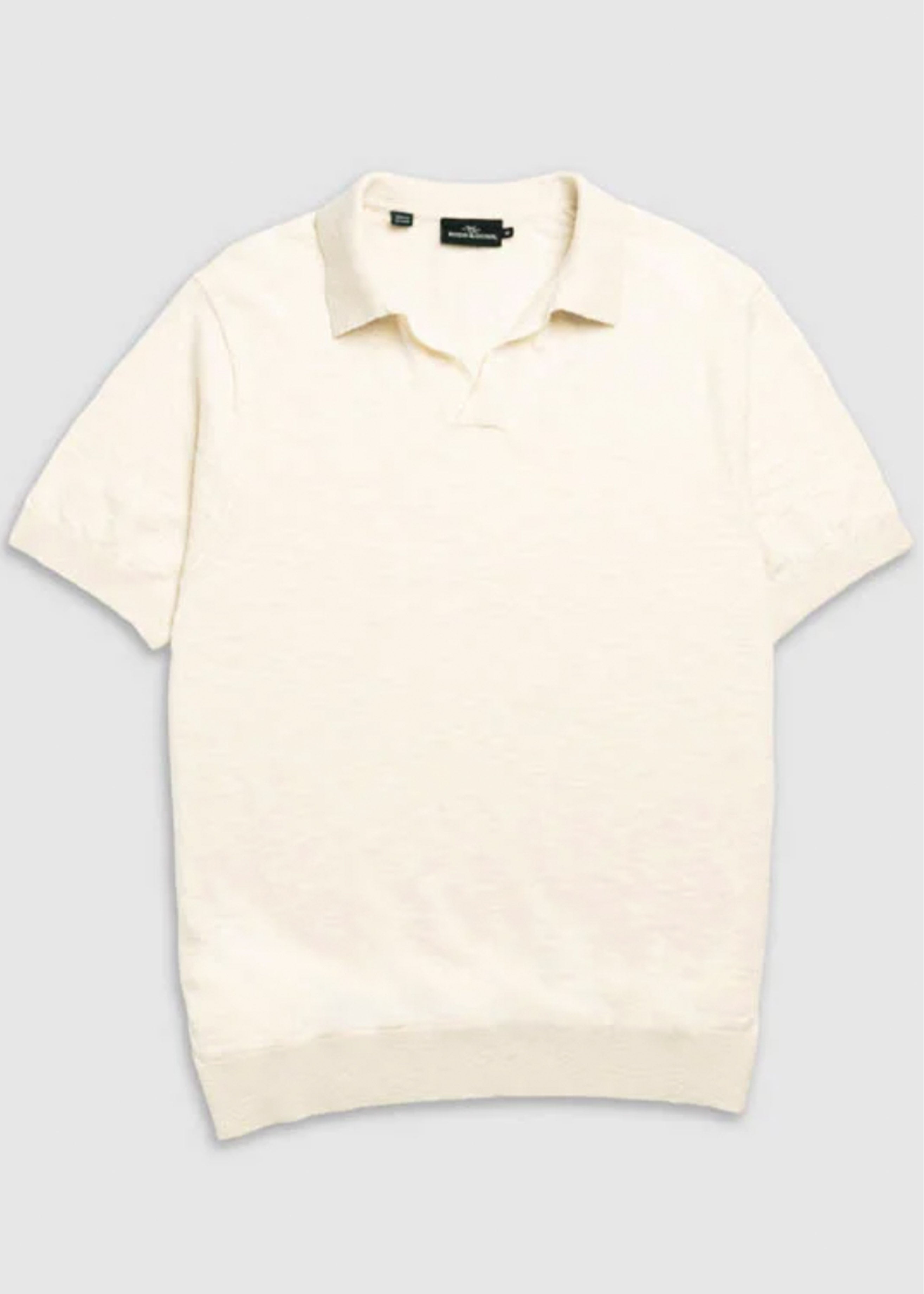 Crafted from premium linen and cotton, this men's polo in Aegean is a sophisticated choice for warmer days. It features engineered fully-fashioned panels, designed for a refined, slimming fit. The classic jersey stitch offers a comfortable texture, while reinforced seams, constructed with high quality polyester core spun thread, ensure lasting durability. The Lycra plaited collar, cuffs, and waist ribs provide enhanced stretch recovery, maintaining its shape wear after wear. A distinctive Johnny style collar completes the look, and a subtle Rodd & Gunn pip label is placed at the lower side seam. Hand wash or dry clean to best care for this garment. Pair it with tailored chinos for a smart casual ensemble, or wear it with linen shorts for a relaxed weekend feel.