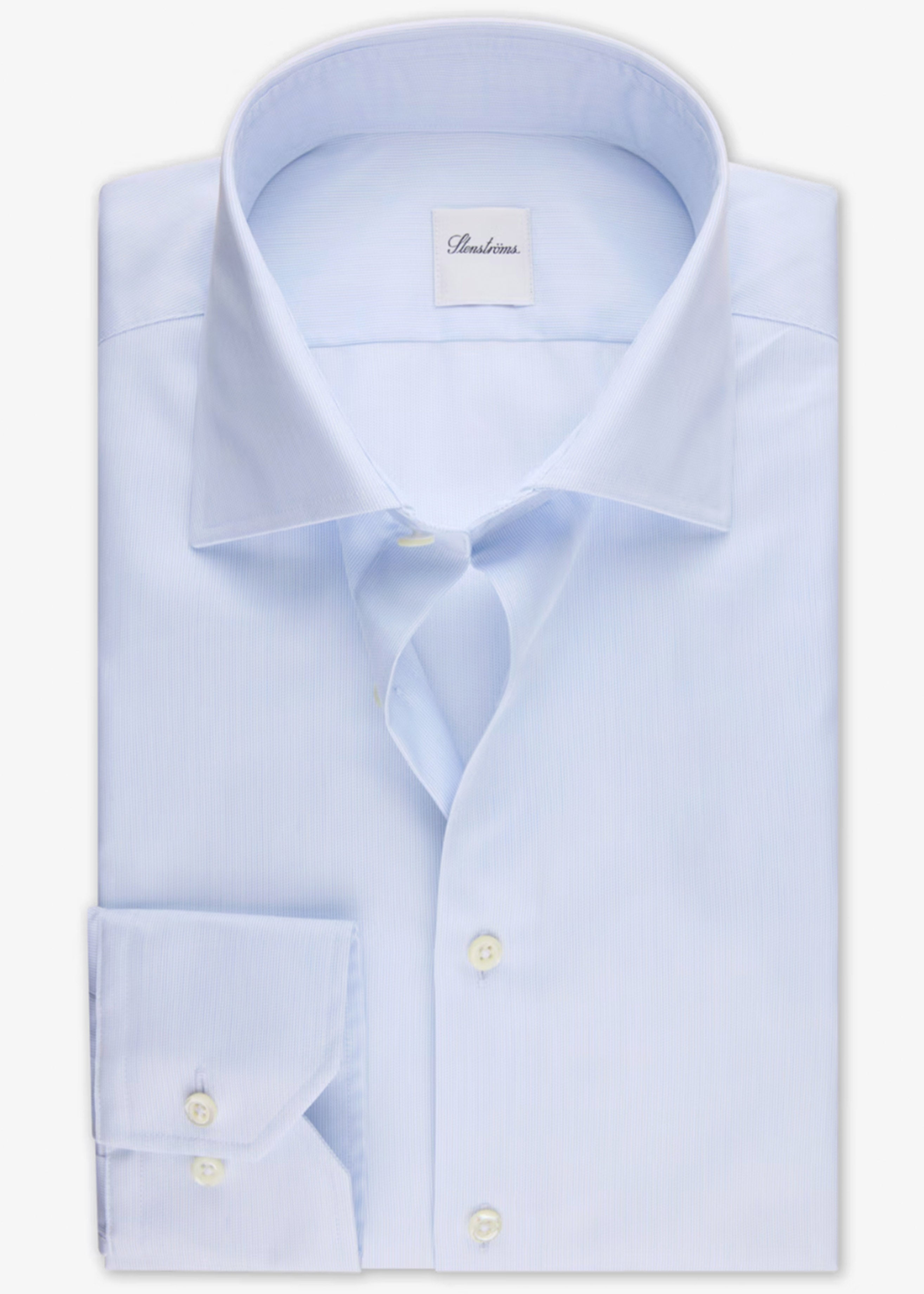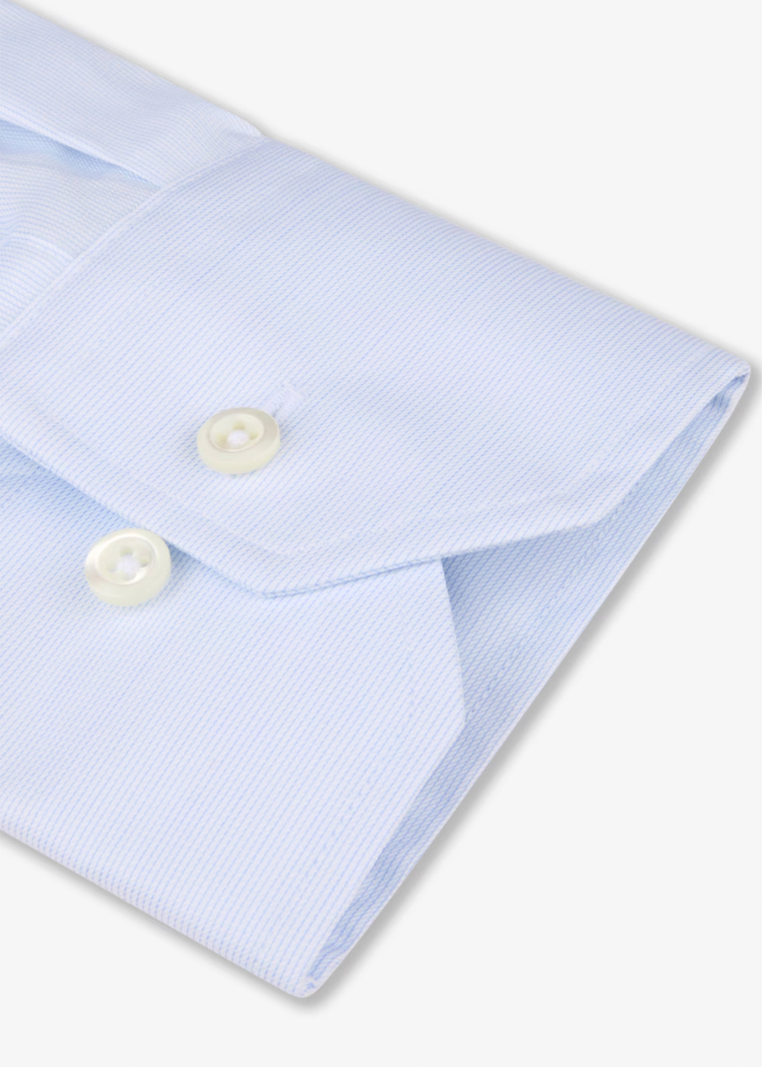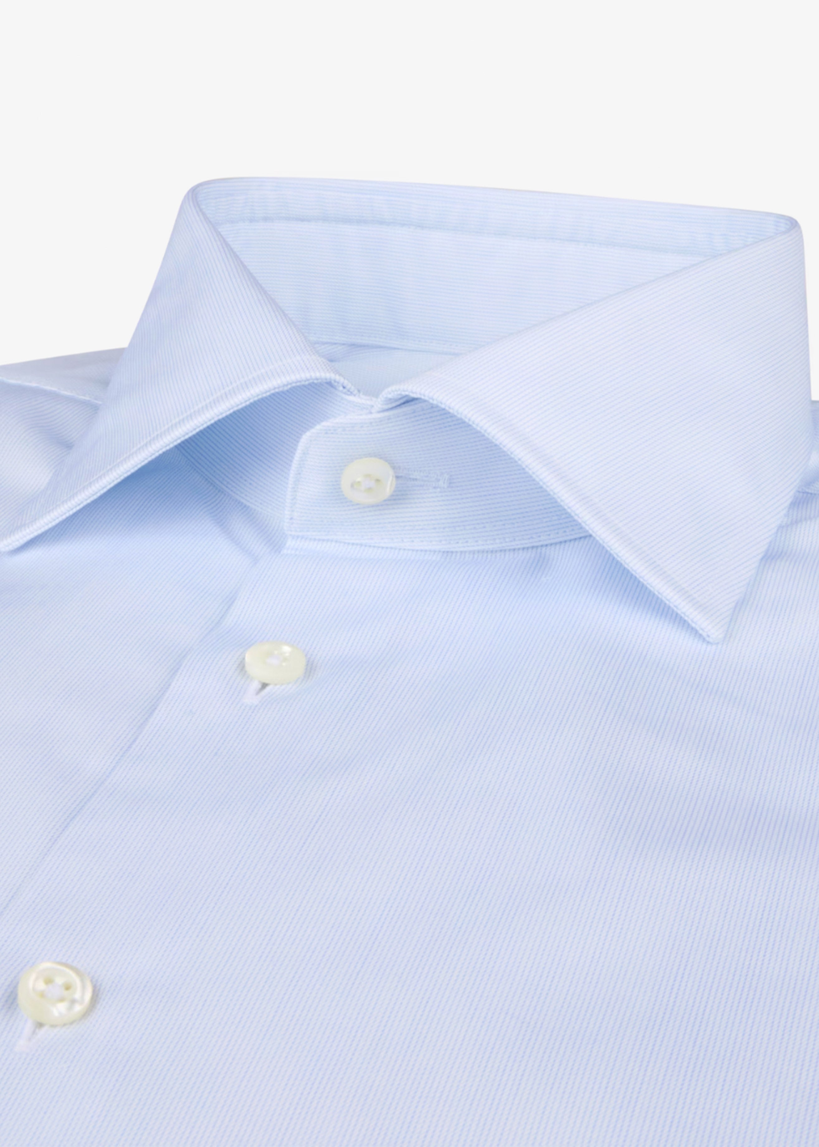 This twill shirt is made of twofold cotton and is detailed with mother of pearl buttons, single cuffs and a cut away collar.